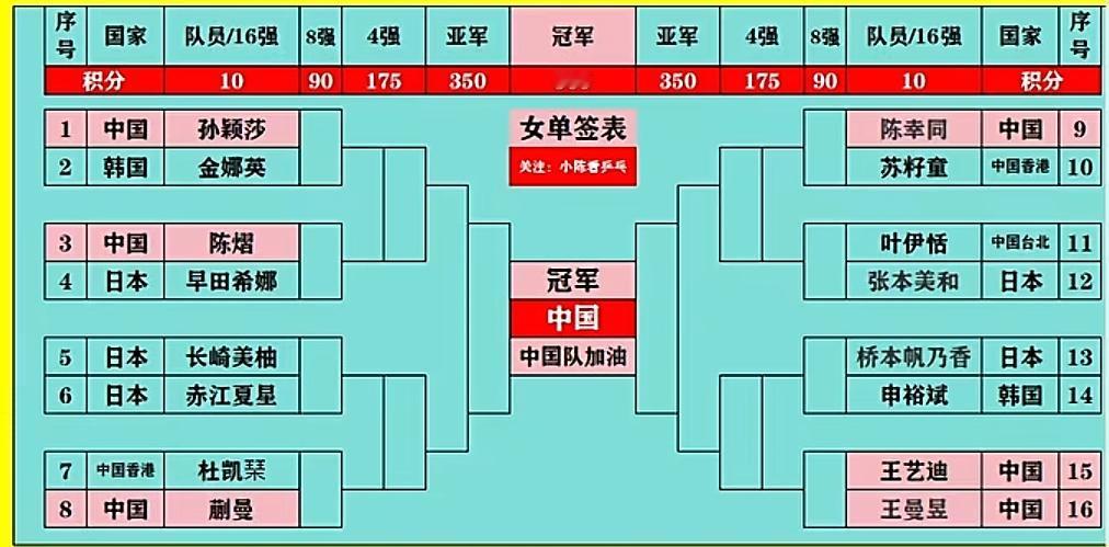 亚洲杯淘汰赛 签表出来了 1/8决赛 曼昱对战大迪 1/4决赛 曼昱大概率 对战桥本帆乃香 半决赛 曼昱对战 张本美和或陈幸同 决赛对战孙颖莎 曼昱加油