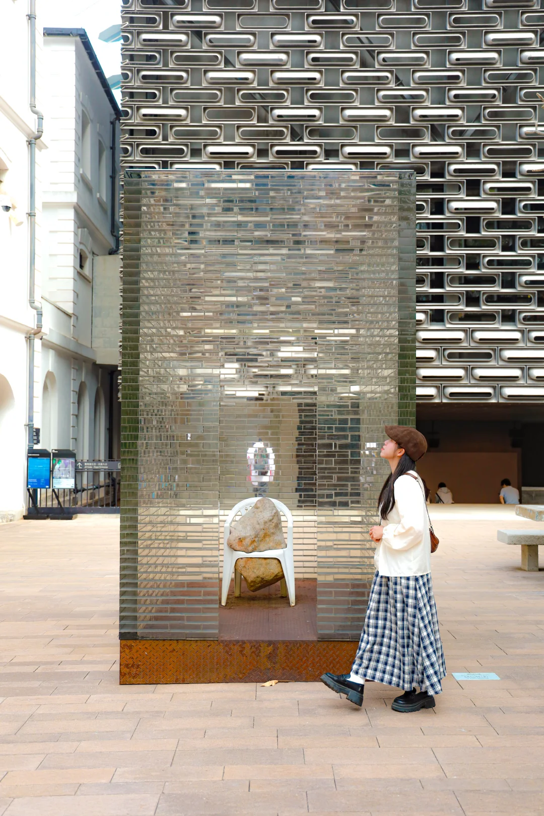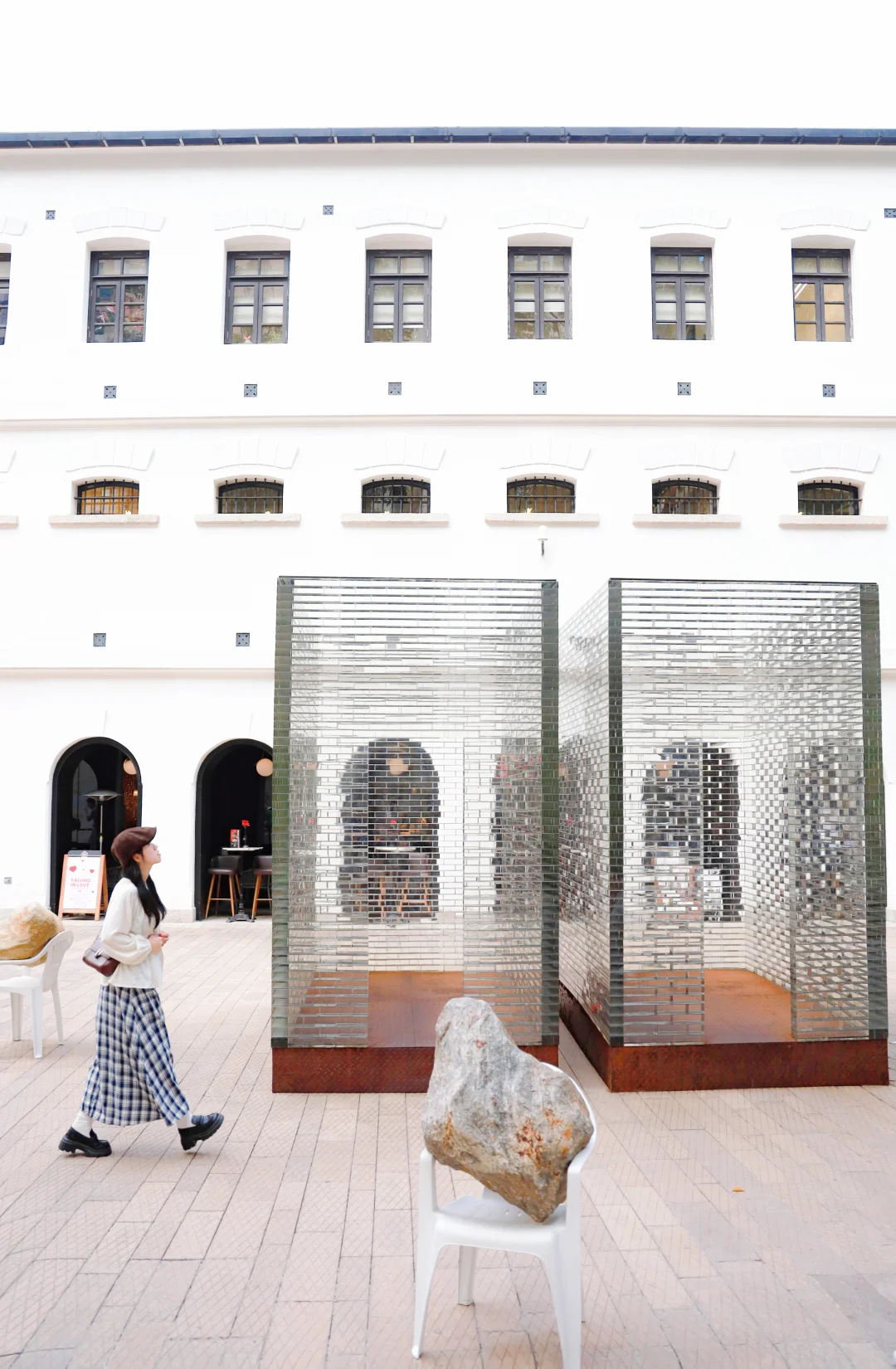 🔶监狱操场-等候亭:六座像囚室一样的玻璃砖房、石头椅子散布在操场上,很特别