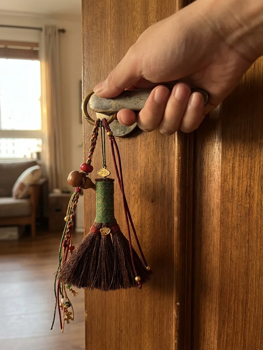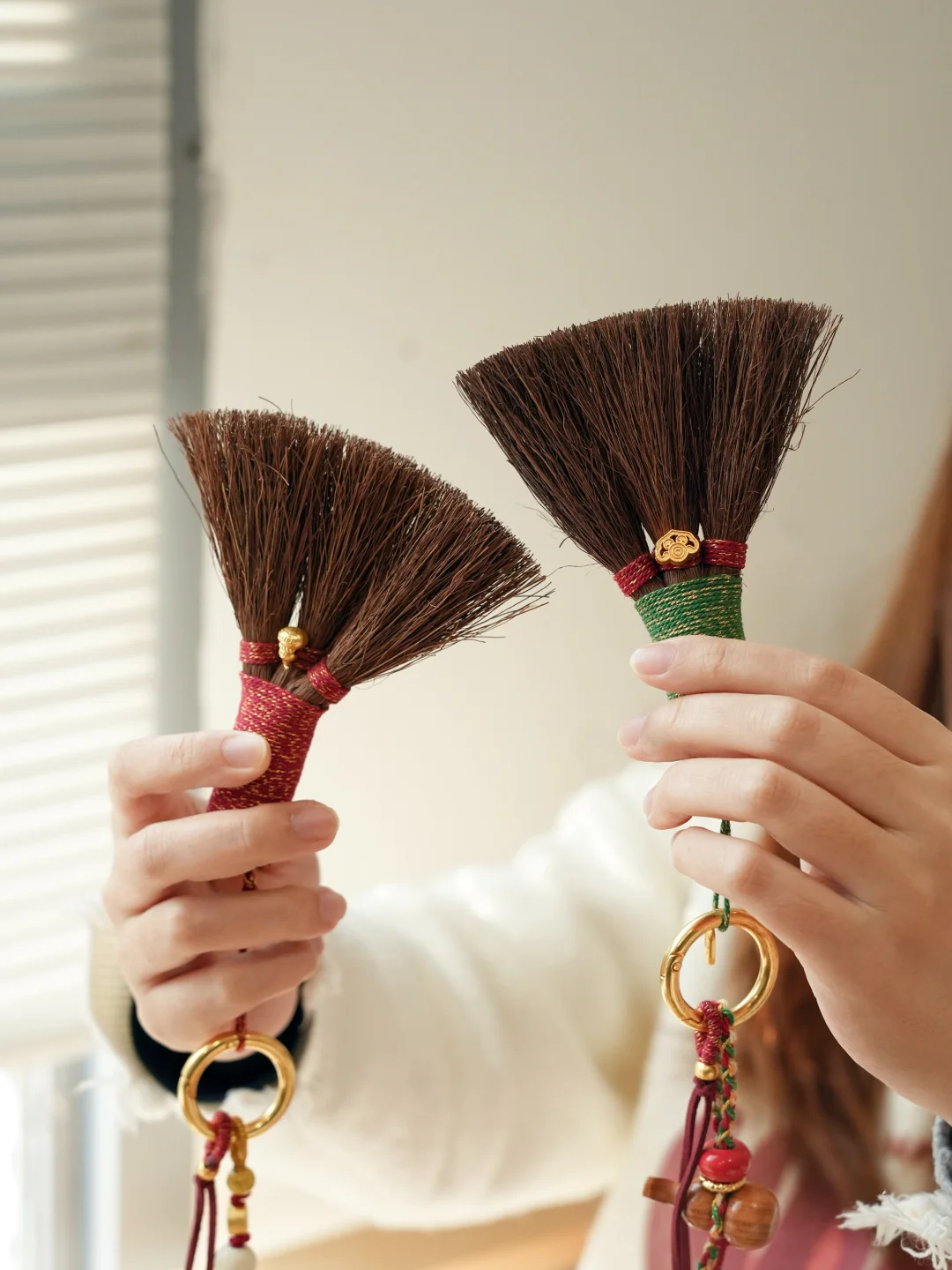 入户门挂扫把的寓意 就是扫掉一切的霉运晦气 才能迎接好运的到来~ 霉运止步,福气进门! 这把小扫帚是用天然棕榈做的 寄托着手艺人的祝福 每编制一下就是祝福+1+1+1 每一把都会配葫芦、祥云、元宝、铜钱 这些真正来自传统文化的祈福符号 门口挂得住 礼盒送得出 这份新年的福气刚刚好