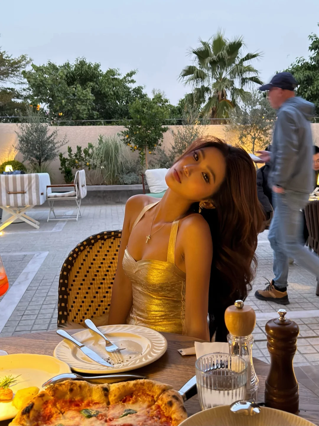 在广州挖到一家很意式氛围的餐厅 推荐最近过生日的姐妹可以选这里 蓝调时刻更出片 最近新收到的小裙子也是出片了 发现黄黑皮更适合缎光质感的小裙子