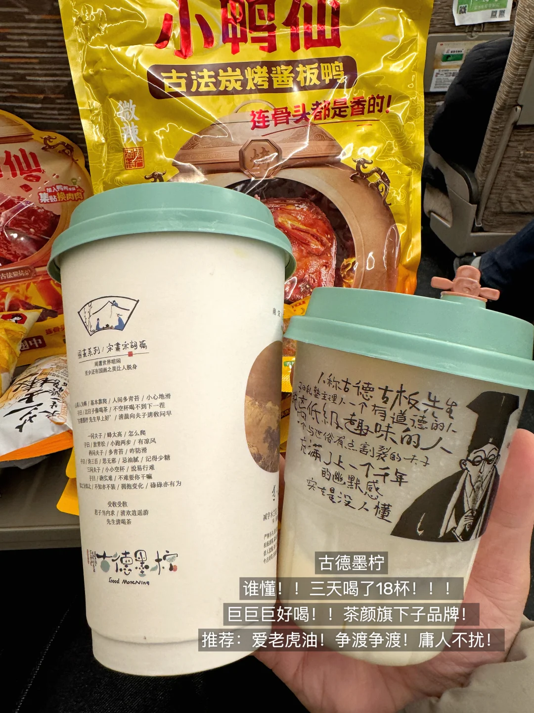 茶颜悦色、古德墨柠、酱板鸭!!!回购自留款分享! 五一广场太多美食了…本地人带路才找到的小鸭仙!真心觉得不错!买了好多袋!明码标价好便宜! 正宗长沙特色酱鸭、辣度可以选择,很香很有嚼劲…!!建议来长沙旅游的姐妹们一定要带走的!!!