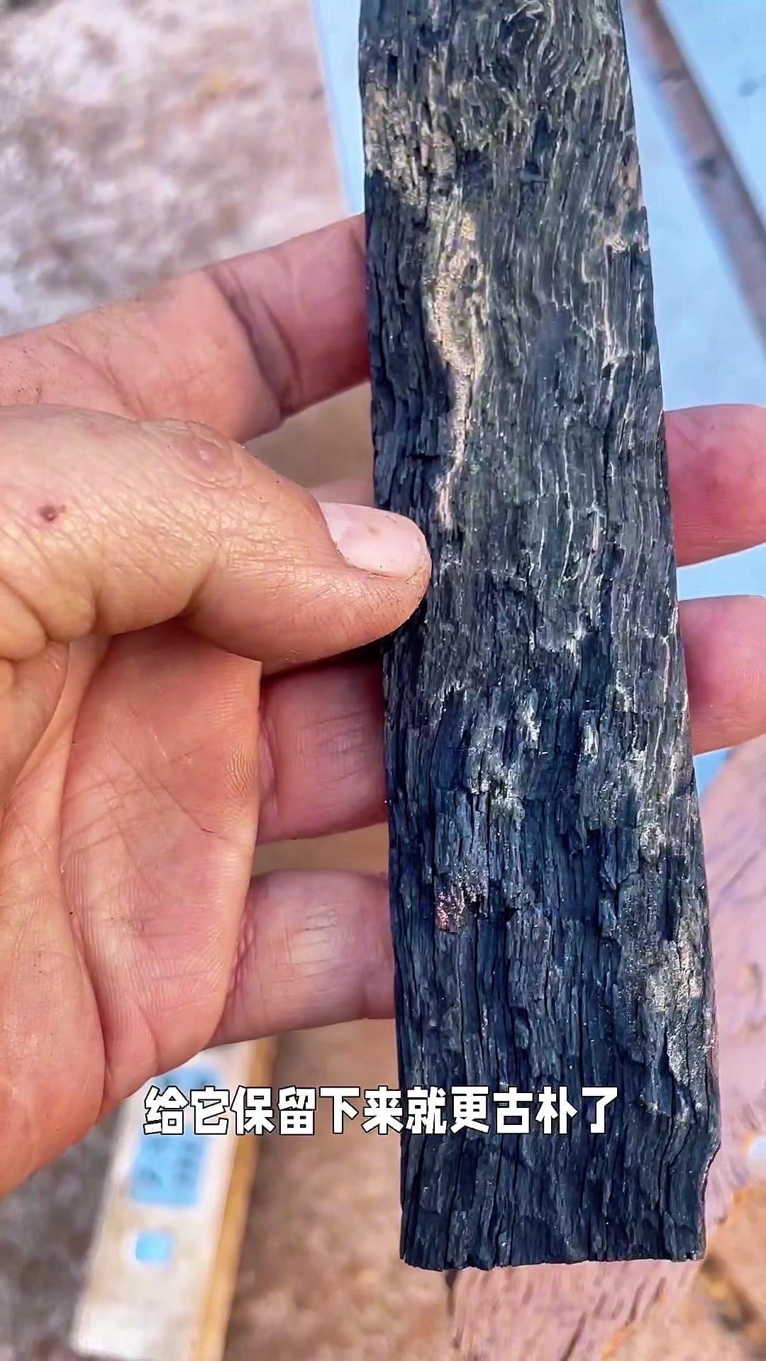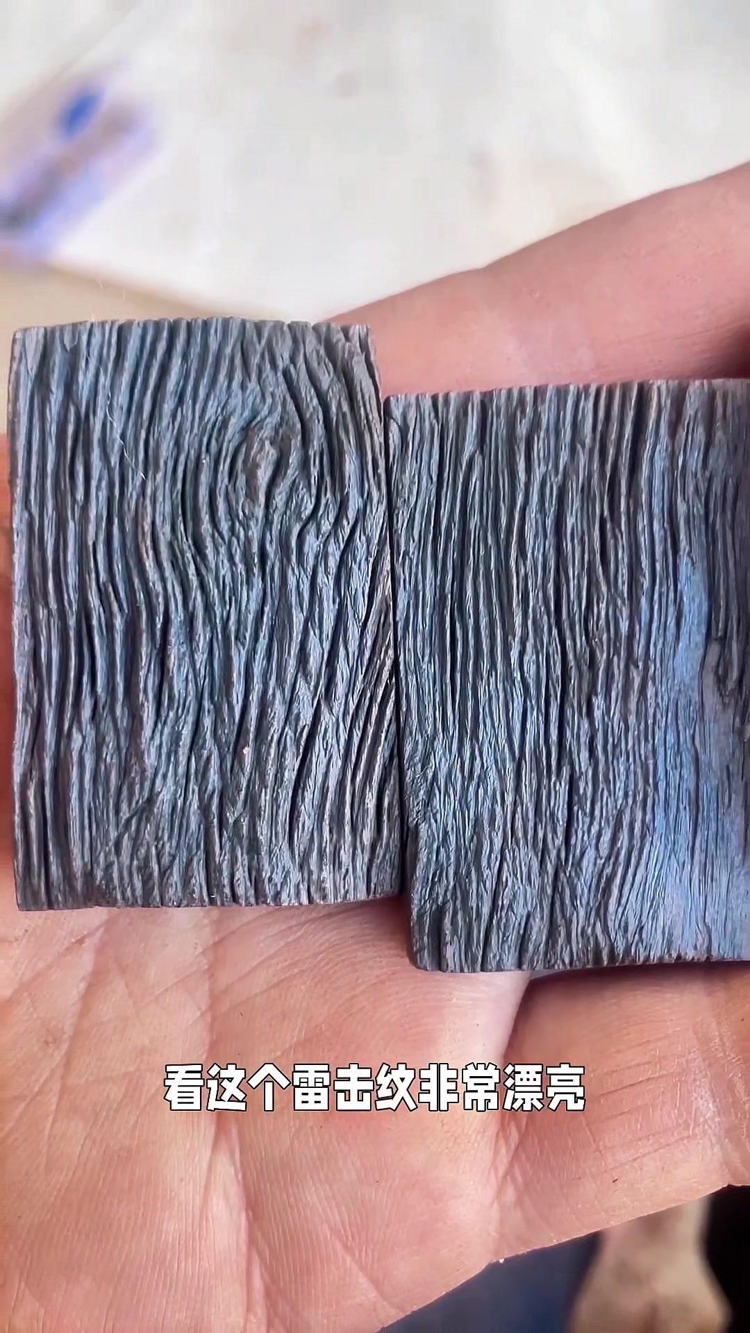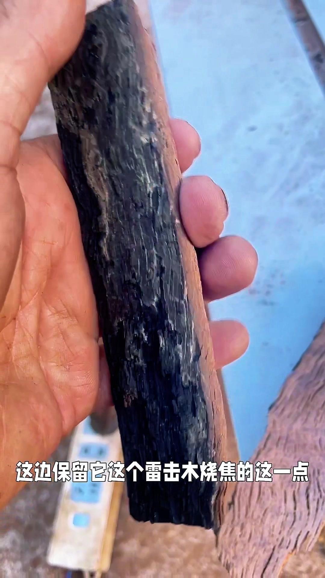 🌿朋友送来的雷击木,本想做手串,却发现裂太多不适合。好在有漂亮的雷击纹,切成随形牌子,保留烧焦的古朴感,比珠子更有韵味。 这个是没碳化的牌子,纹理清晰,另一个带点焦黑,风格更独特。本来能切四块牌子,有块抛的时候碎了,剩下三块随形的,每块都独一无二。 1️⃣处理木料:先挑出没裂的部分做牌子,有裂的改珠子,1.2的珠子大小刚好。保留烧焦痕迹,让成品更有自然古朴感。 2️⃣加工制作:用机器车出牌子形状和珠子,过程中注意避开裂纹,抛完光后穿成手串,无事牌就完成了。虽然木料硬度一般,但雷击木的特殊纹理让它更有价值。 大家觉得雷击木除了珠子和牌子,还能做成什么?