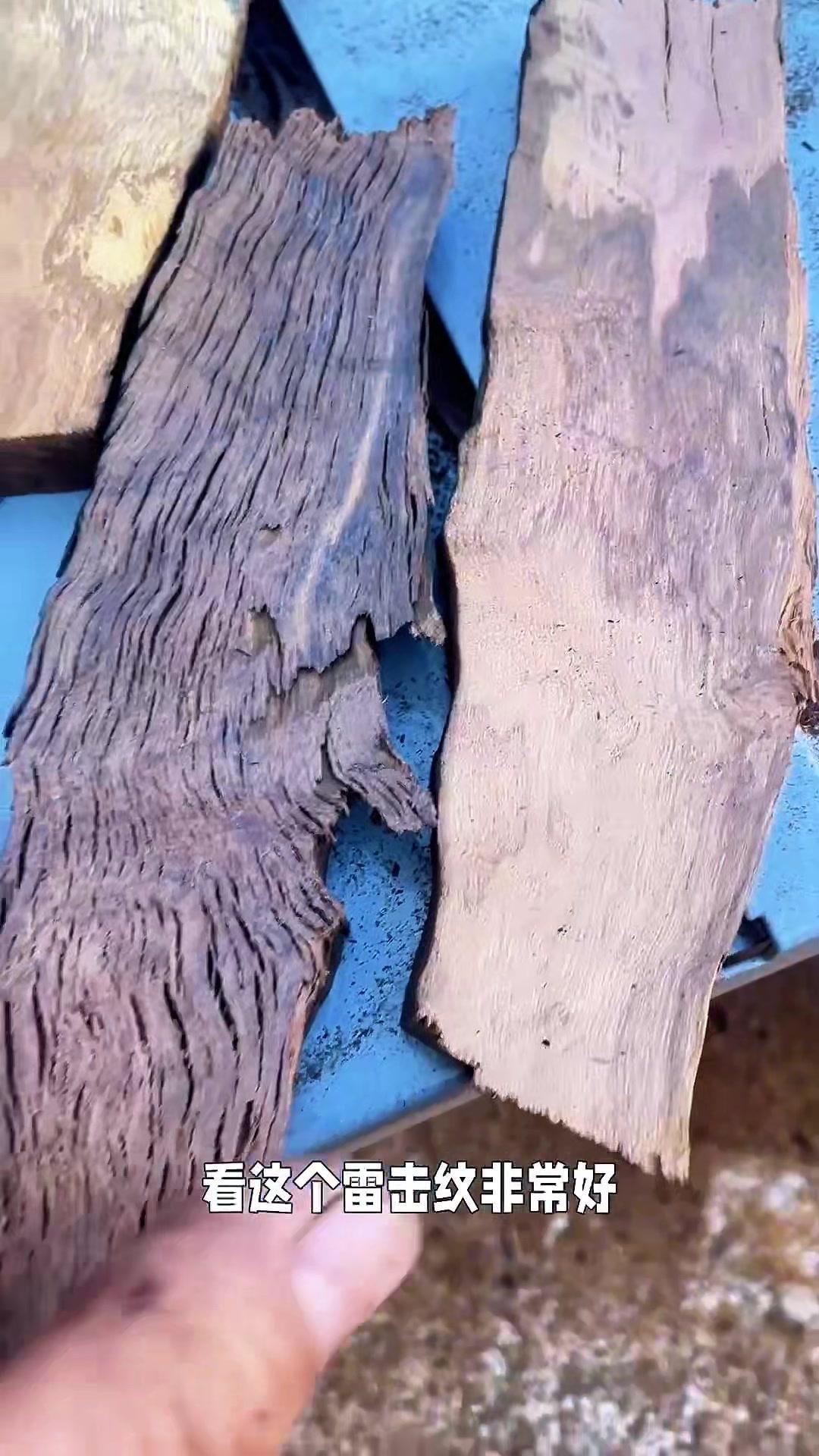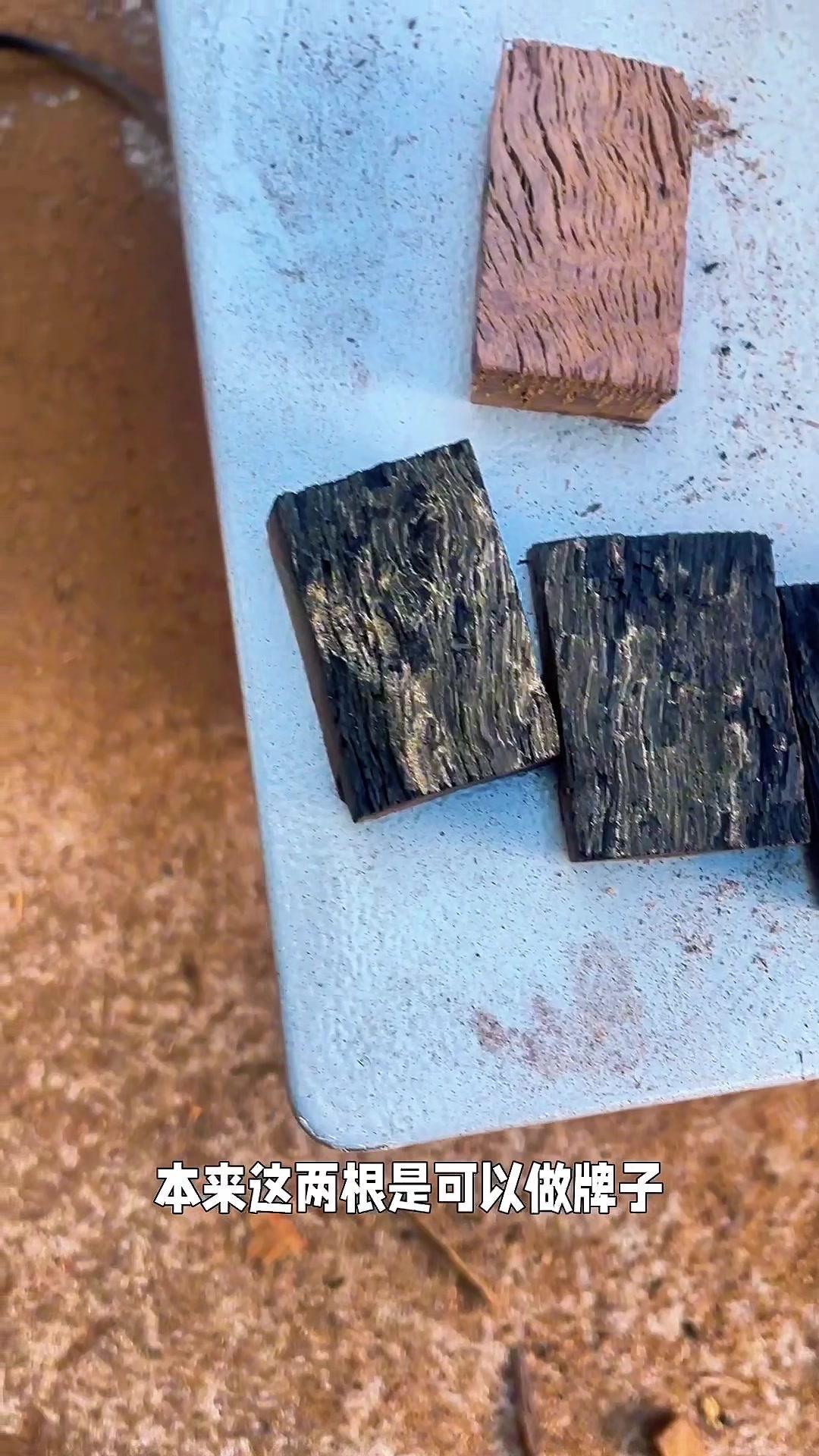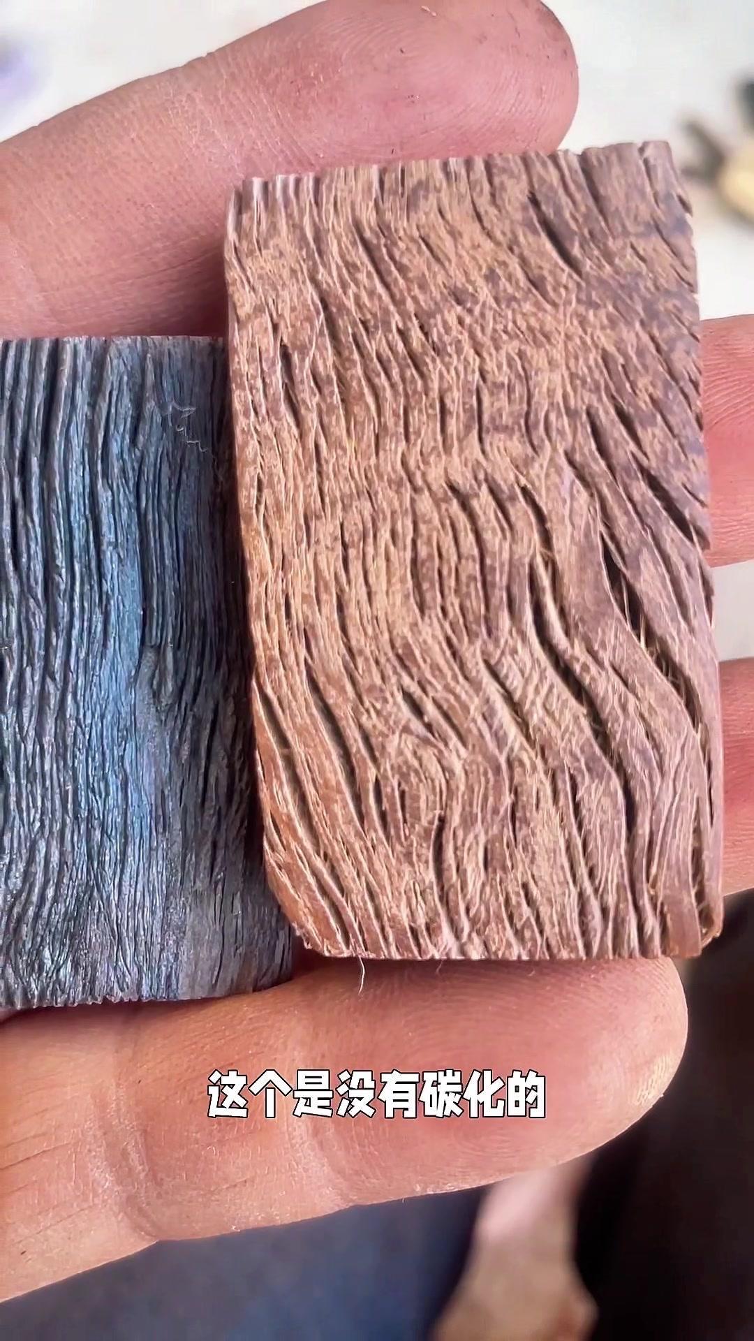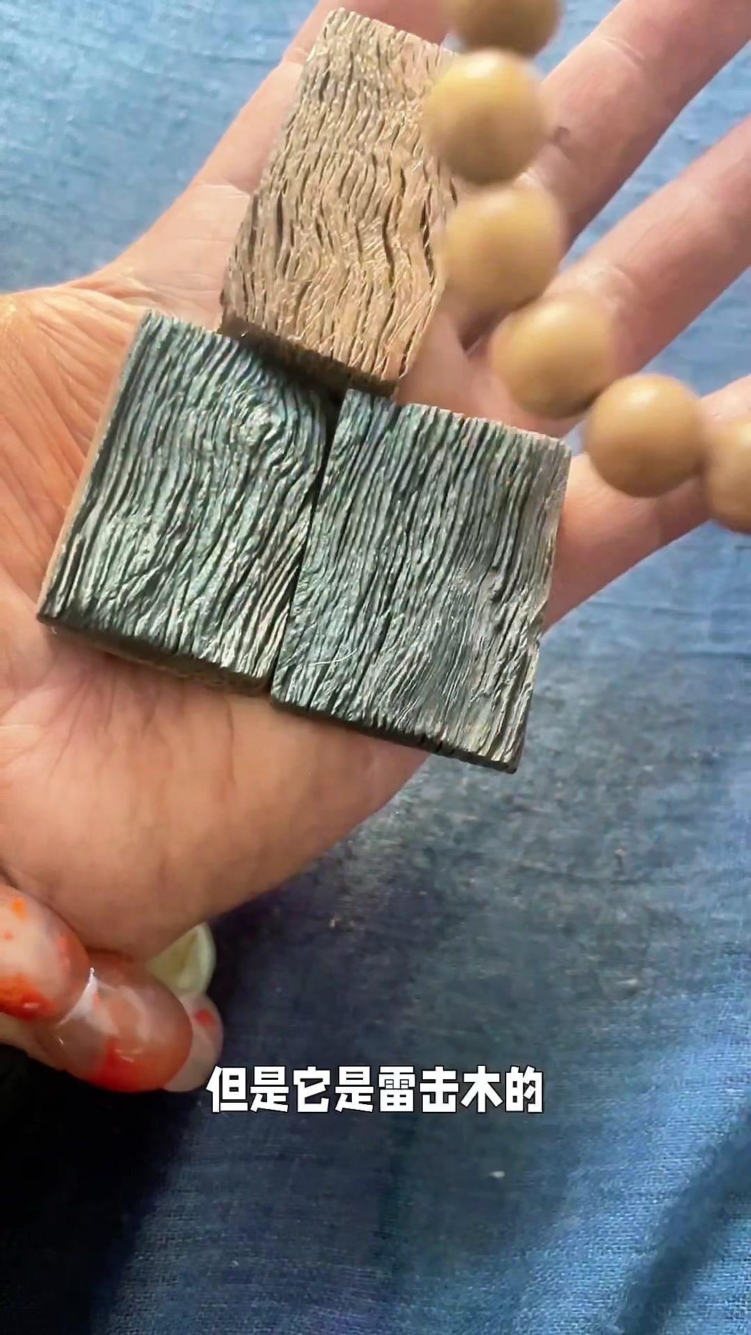 🌿朋友送来的雷击木,本想做手串,却发现裂太多不适合。好在有漂亮的雷击纹,切成随形牌子,保留烧焦的古朴感,比珠子更有韵味。 这个是没碳化的牌子,纹理清晰,另一个带点焦黑,风格更独特。本来能切四块牌子,有块抛的时候碎了,剩下三块随形的,每块都独一无二。 1️⃣处理木料:先挑出没裂的部分做牌子,有裂的改珠子,1.2的珠子大小刚好。保留烧焦痕迹,让成品更有自然古朴感。 2️⃣加工制作:用机器车出牌子形状和珠子,过程中注意避开裂纹,抛完光后穿成手串,无事牌就完成了。虽然木料硬度一般,但雷击木的特殊纹理让它更有价值。 大家觉得雷击木除了珠子和牌子,还能做成什么?