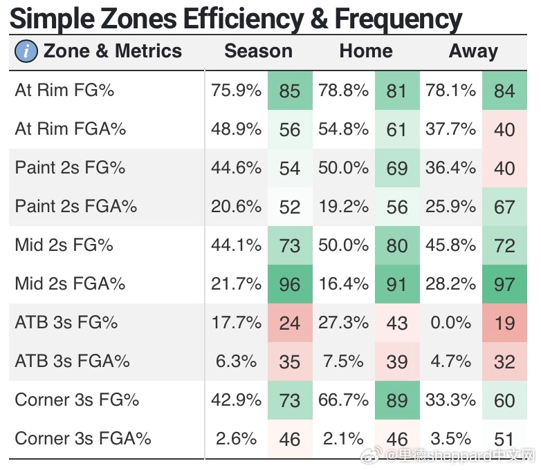 图1是投篮热图,没啥多解释的,三分很一般,但这个真的能开发图2进攻手段,油漆区和中距离投射很棒,对于一个内线而言有抛投/脚步/单打技术,主客场能相对稳定的发挥,底角三分好于弧顶,可以站底角图3综合技术解析,有投射能力(偏内线),有持球能力,有脚步移动,防守几乎拉满了,球风也适合nba比赛这让我想到上赛季我个人喜欢的cmb,就是猛龙那个9顺位新秀,cmb内线进攻比威尔逊强一些,而且在南卡外线投射一般的cmb来到nba直接升级完成….图4改为饼状图给出一个和布泽尔的对比(图5),来nba以后上限不比布泽尔差…