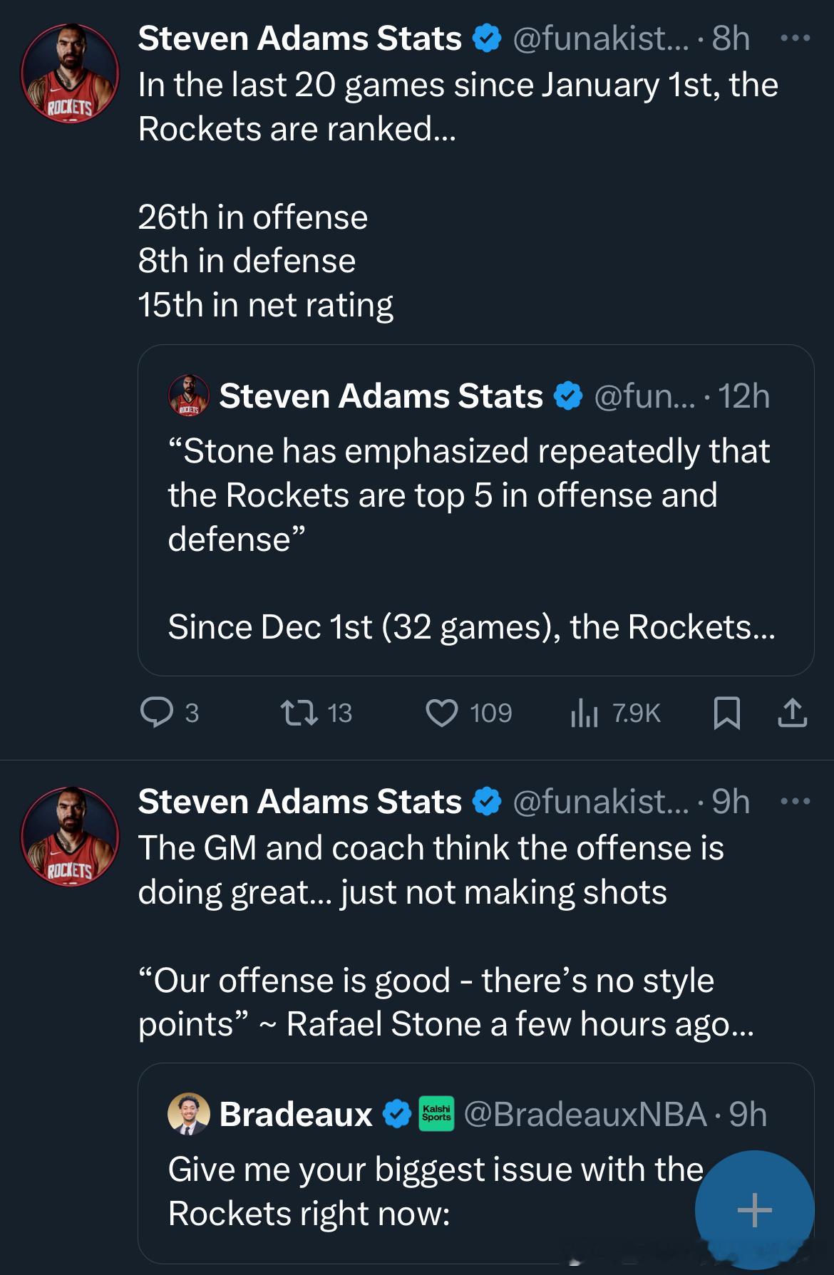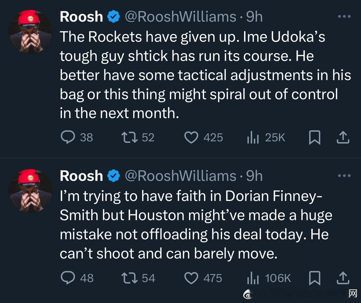 都表达了自己的“愤怒”💢(战绩和截止日操作)都在各个角度质疑着这支目前让人看不懂的火箭…具体的还有更细节的点评不截图了… 涉及到对球员或教练或者管理层的视频的细节质问(有的言辞激烈)….大家对目前的这支火箭都能看出来问题了…. 沮丧之情,不仅我们有,都有….希望球队慢慢沉淀下来吧…