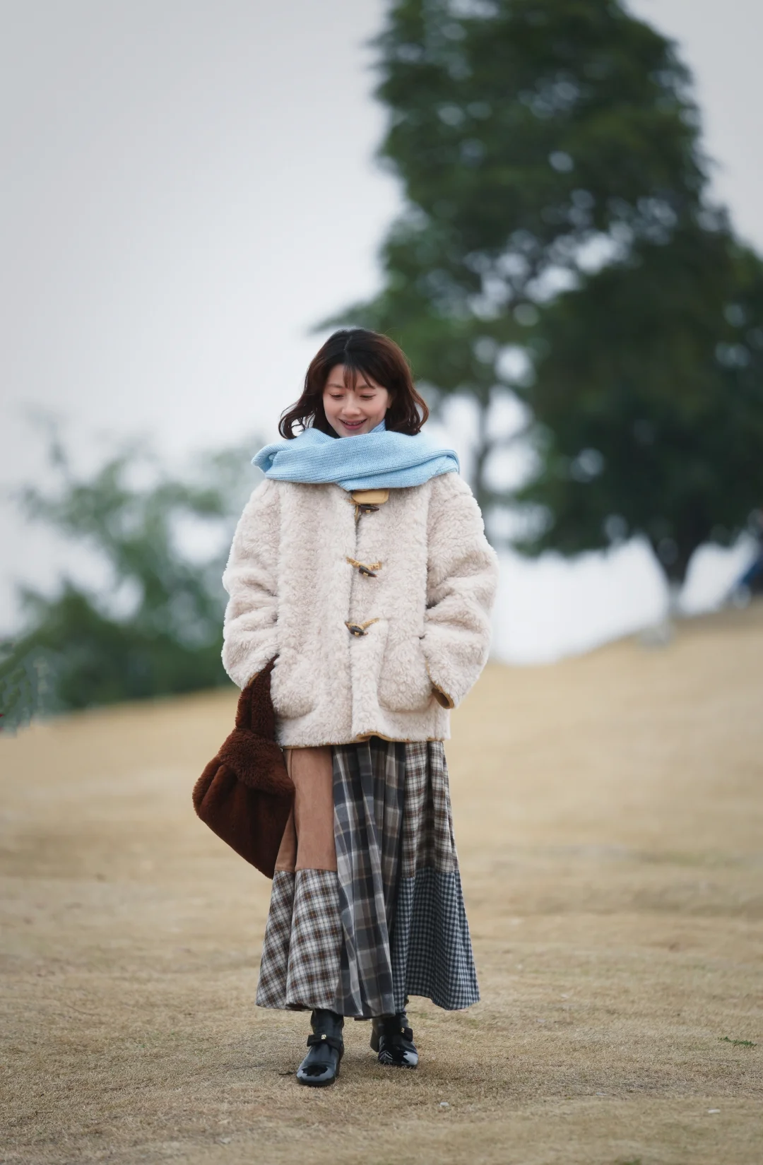 - 来日本快一年,绝大多数衣服还是国内买,这套是新年回家时入的,我很喜欢这种毛茸茸的衣服,莫名会想到春天的熊,喜欢村上春树的可能都懂。裙子是拼布,有点波西米亚,又有点流浪风,天蓝色围脖在北海道太实用了,围脖、帽子两用,最近属于不戴帽子,耳朵会冻掉的程度~ -