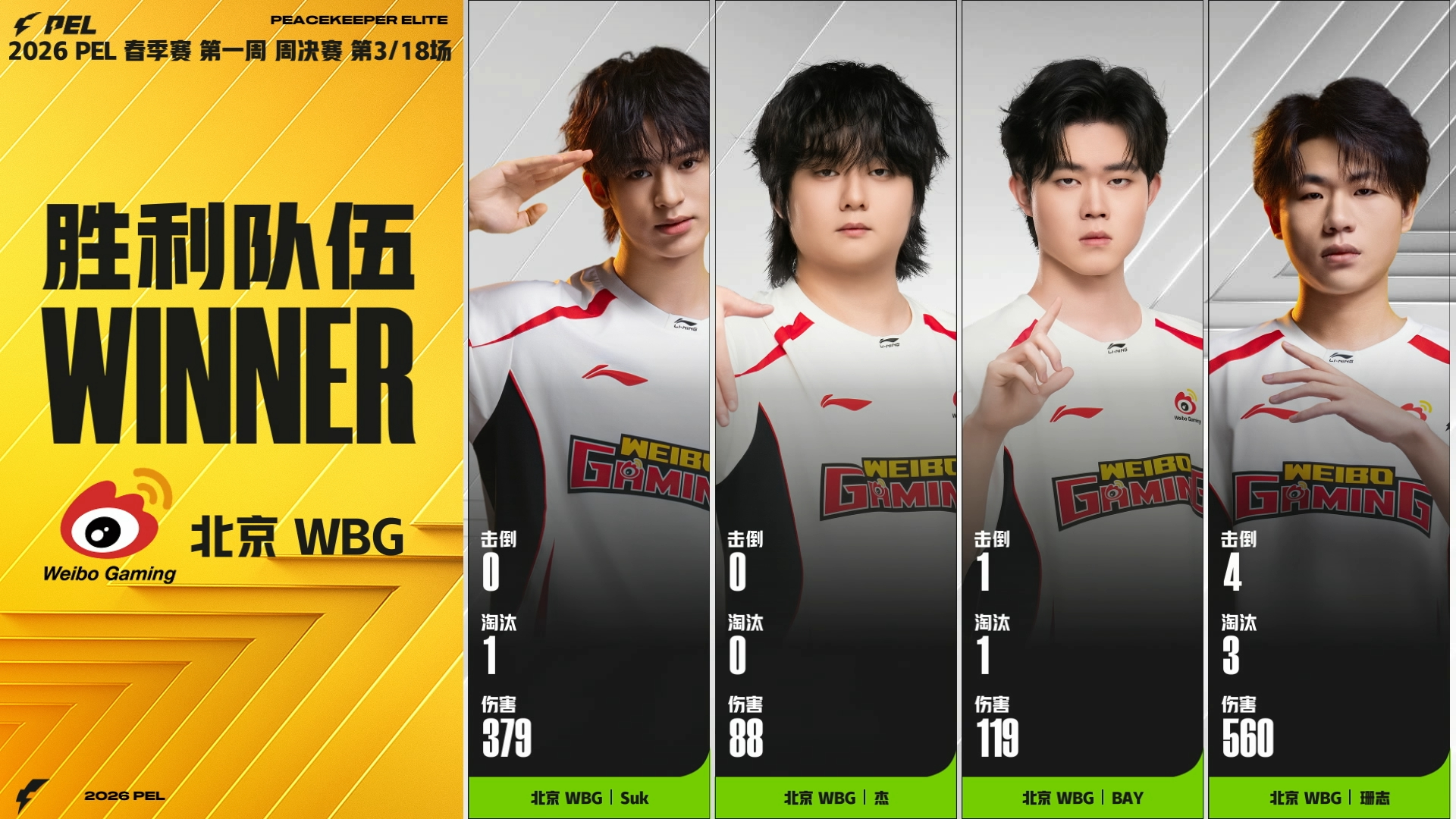 WBG解锁2026首鸡成就!赛场运营思路清晰,决赛圈冷静应对多方对决,凭硬实力收