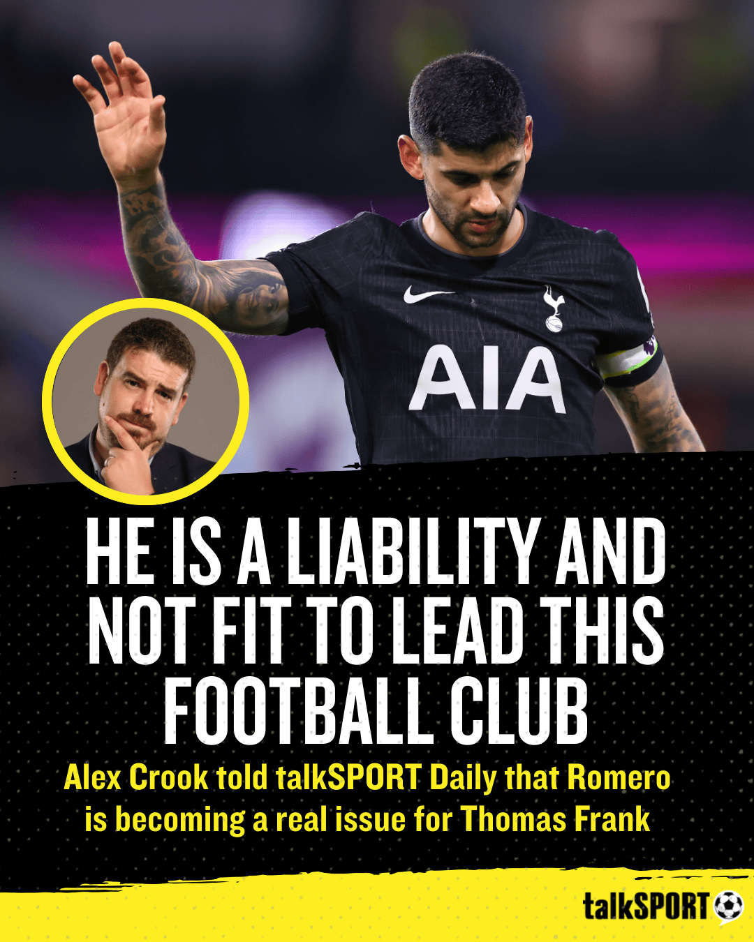 罗梅罗本赛季多次直言批评热刺管理层,上个月还曾指责俱乐部董事会“满口谎言”。AlexCrook谈及罗梅罗时表示:“即便在周一晚转会窗关闭后罗梅罗发布这条Ins之前,我就想表达这个犀利观点了,因为周日下午我就在热刺主场现场观赛。”
