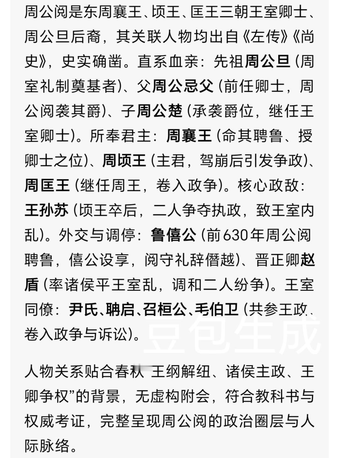 周公阅:周顷王重臣,争政败亡藏王室衰微密码? 谁能想到,周公旦的后裔、周顷王姬壬臣倚重的卿(qīng)士周公阅,竟在王室权力博弈中落得流亡下场?他恪守周礼、忠心辅政,却终究抵不过礼崩乐坏的乱世洪流,一生沉浮,恰是东周王室衰微最真实的注脚。 一、周公后裔,顷王倚重的朝堂柱石 周公阅是周公旦的嫡系后裔,承袭周公爵位,在周顷王时期担任王室卿士,执掌朝政。 彼时的周王室,早已失去西周时的威仪,诸侯争霸、王室式微,周顷王在位六年,国库空虚、政令难出洛邑。 周公阅凭借先祖名望与自身才干,成为顷王最信任的臣子,他熟悉周礼典制,擅长外交斡旋,试图以礼制维系周王室的最后尊严。 二、出使鲁国,以周礼挽王室颜面 鲁文公十四年(公元前613年),周顷王派周公阅出使鲁国,参加鲁文公的祭祀大典。 这是东周王室少有的主动外交,周公阅深知此行意义重大,他身着周室礼服,手持圭(guī)璧,携鬯(chàng)酒等礼器,依周礼行三献之礼。 《左传》记载,周公阅在鲁国朝堂上,从容阐述周室礼制,驳斥鲁国大夫对王室的轻慢,虽未能让鲁国重新臣服,却也暂时守住了周王室的礼仪体面。 在我看来,这是周公阅最耀眼的时刻,他以一己之力,在诸侯面前撑起了周室的门面,却也难掩王室的虚弱。 三、王室争政,与王孙苏的权力死局 出使鲁国归来后,周公阅卷入了周王室最激烈的权力斗争——与王孙苏争政。 王孙苏是周顷王的同族,野心勃勃,觊觎卿士之位,两人在朝堂上针锋相对,从朝政决策到官员任免,处处针锋相对。 周顷王虽有心调解,却因王室实力太弱,无法压制任何一方,只能在两人之间和稀泥。 周公阅恪守臣道,坚持以周礼理政,而王孙苏则拉拢诸侯、结党营私,双方的矛盾愈演愈烈,洛邑朝堂陷入分裂。 四、败亡流亡,周室衰微的终章 鲁文公十五年(公元前612年),王孙苏暗中勾结晋国,借助诸侯势力向周王室施压。 周顷王无力对抗晋国,被迫妥协,罢免周公阅的卿士之位,周公阅无奈之下,逃离洛邑,流亡他国。 这位一生忠于周室、恪守礼制的老臣,最终没能挽救王室的颓势,反而成了权力斗争的牺牲品。 周公阅流亡后,王孙苏独掌朝政,周王室的礼制彻底崩坏,诸侯愈发轻视王室,东周的衰落再也无法逆转。 在我看来,周公阅的悲剧,从来不是个人的失败。他有守礼之心、辅政之才,却生在了周室衰微的时代,周礼早已约束不了诸侯,也压不住朝堂的野心。他的坚守,在乱世中显得格外无力,却也让我们看到了乱世中,仍有臣子坚守初心的模样。 你觉得周公阅的失败,是对手太狠,还是周顷王太软弱?欢迎在评论区聊聊!东周列国志 周顷王之臣