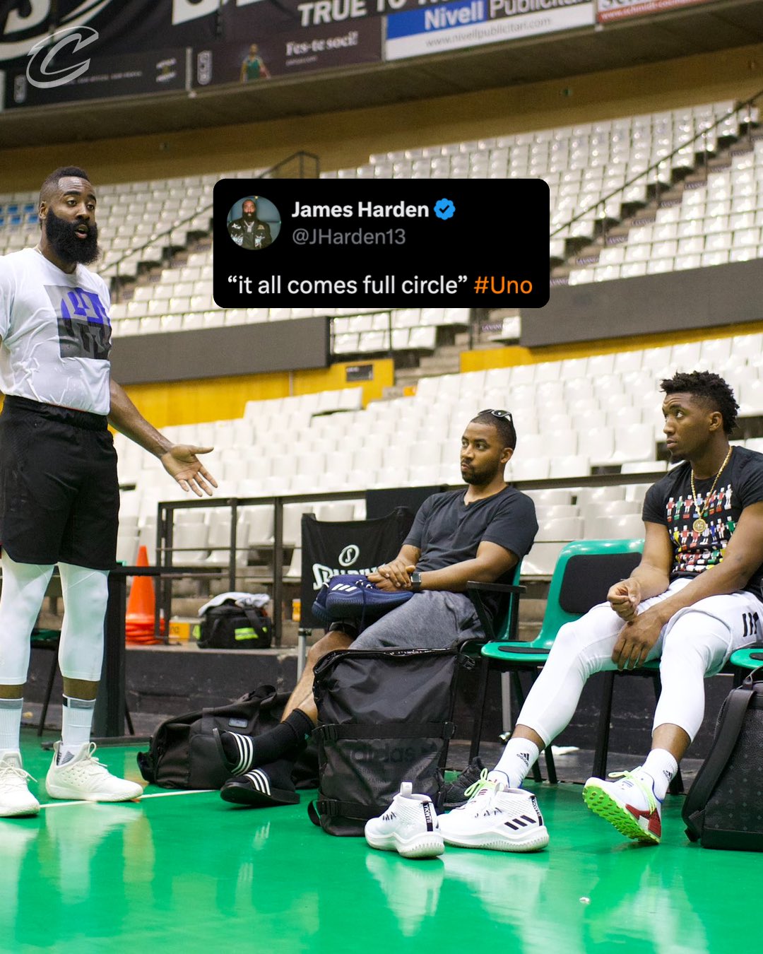 虎扑02月07日讯今日,骑士更新社媒晒出詹姆斯-哈登与多诺万-米切尔同框的老照片,并配文: