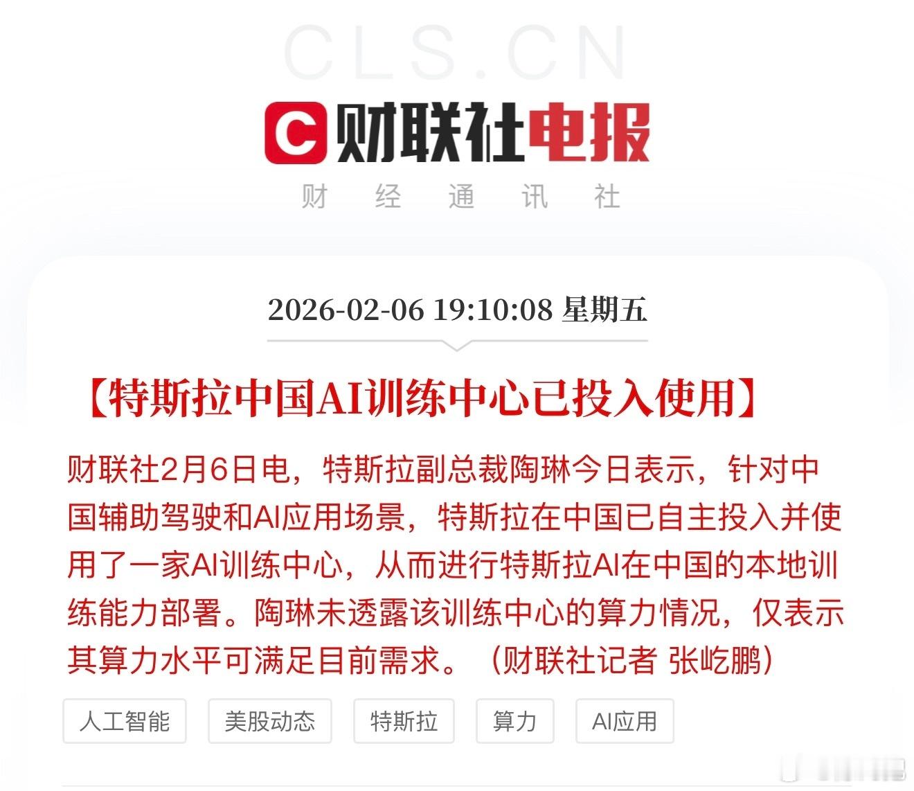特斯拉在中国的训练中心开始投入使用,就看V14满血版哪天进来了