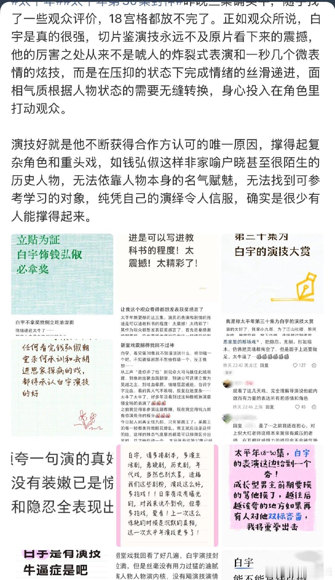 白宇太平年口碑白宇太平年口碑!!!太平年追到现在35集,白宇在《太平年》里的钱弘