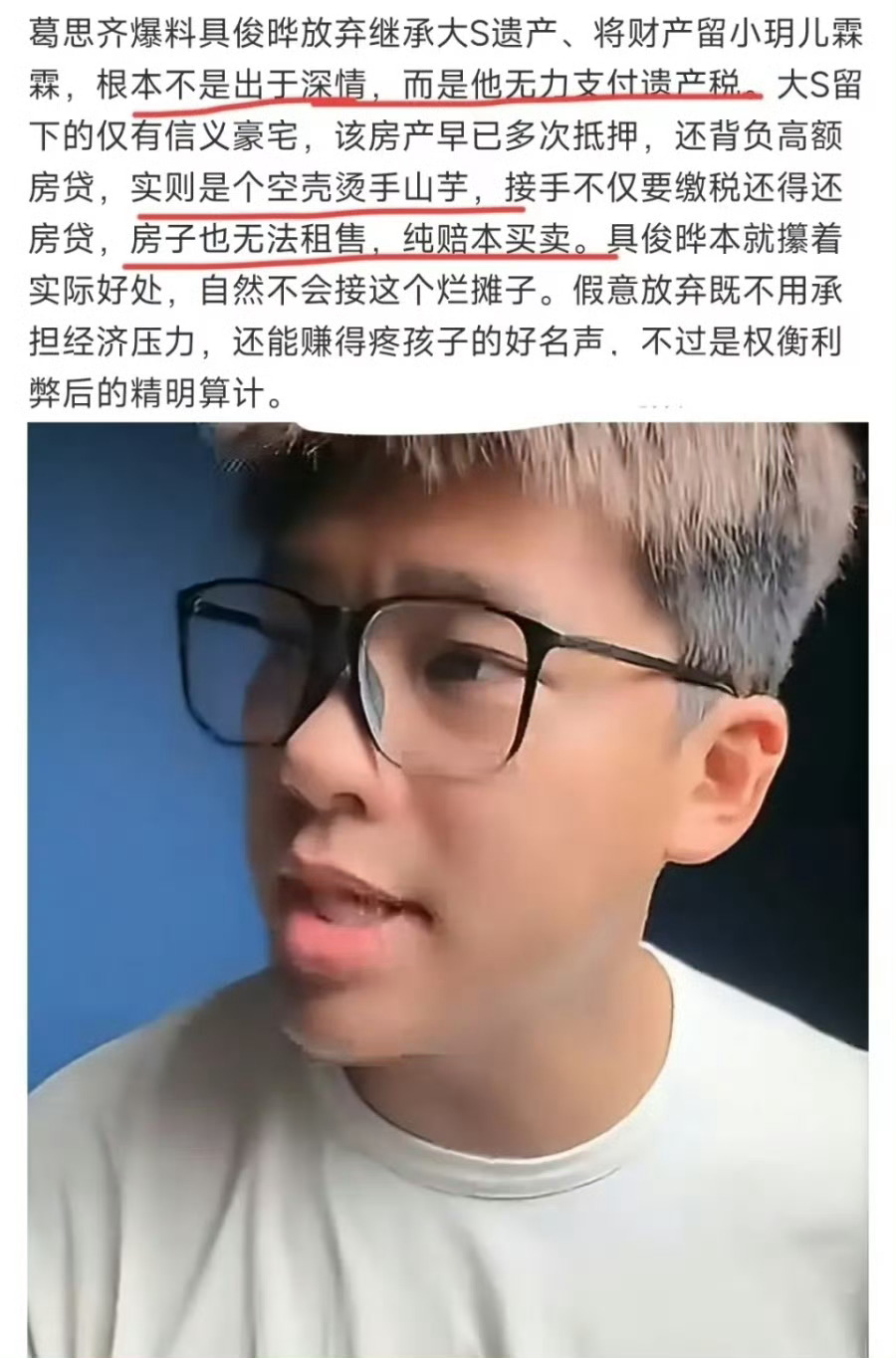 具俊晔最新动态:跪在大S墓前掩面哭泣,葛斯齐爆他放弃遗产,是因为交不起贷款和遗产