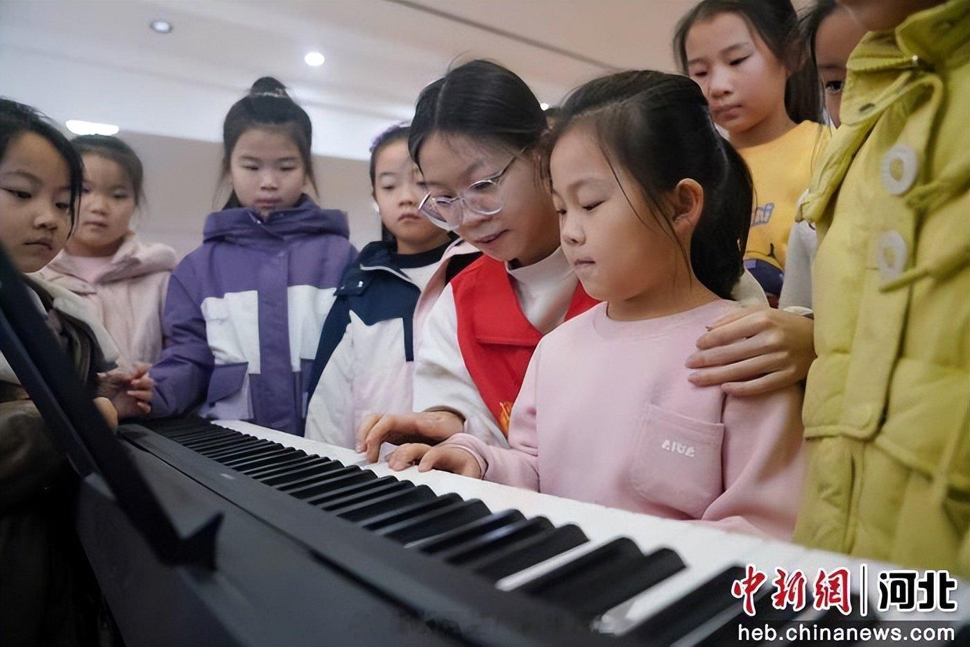 图为志愿者指导孩子们弹琴。李栋摄