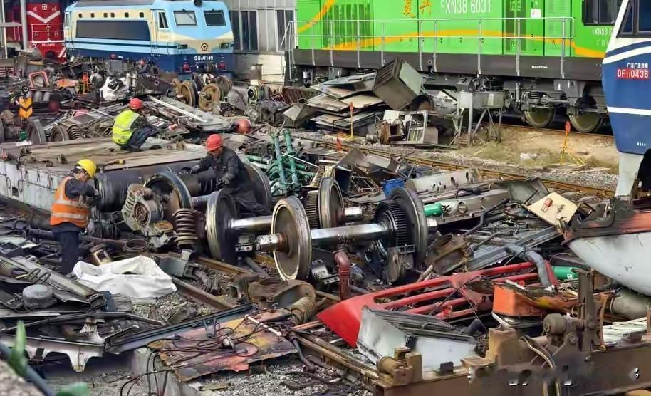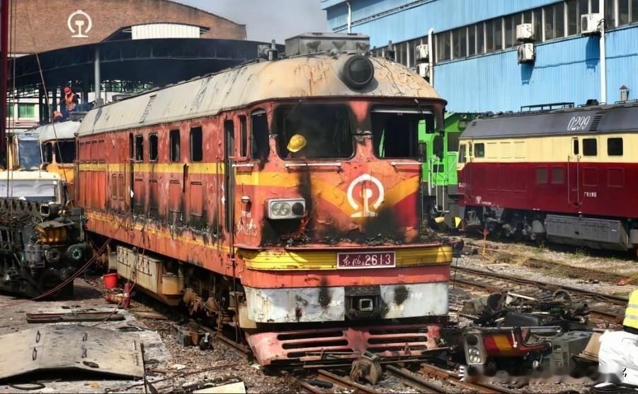 火车内燃机车报废后最后的下场,就是成为一堆堆的废铁。这是前不久在广州机务段进行的机车报废拆解作业。这台编号为2613号的东风4b橘子内燃机车,在服役了30多年后,终于也走向了报废拆解。这台机车过去曾长期奔跑在广茂铁路上,来回运送了无数的旅客。随着年限增加,车况老旧,最终只能走向报废。只不过遗憾的是这辆车为了能进入铁博善终,最后只能以一堆废铁的形式融入炼钢炉中。