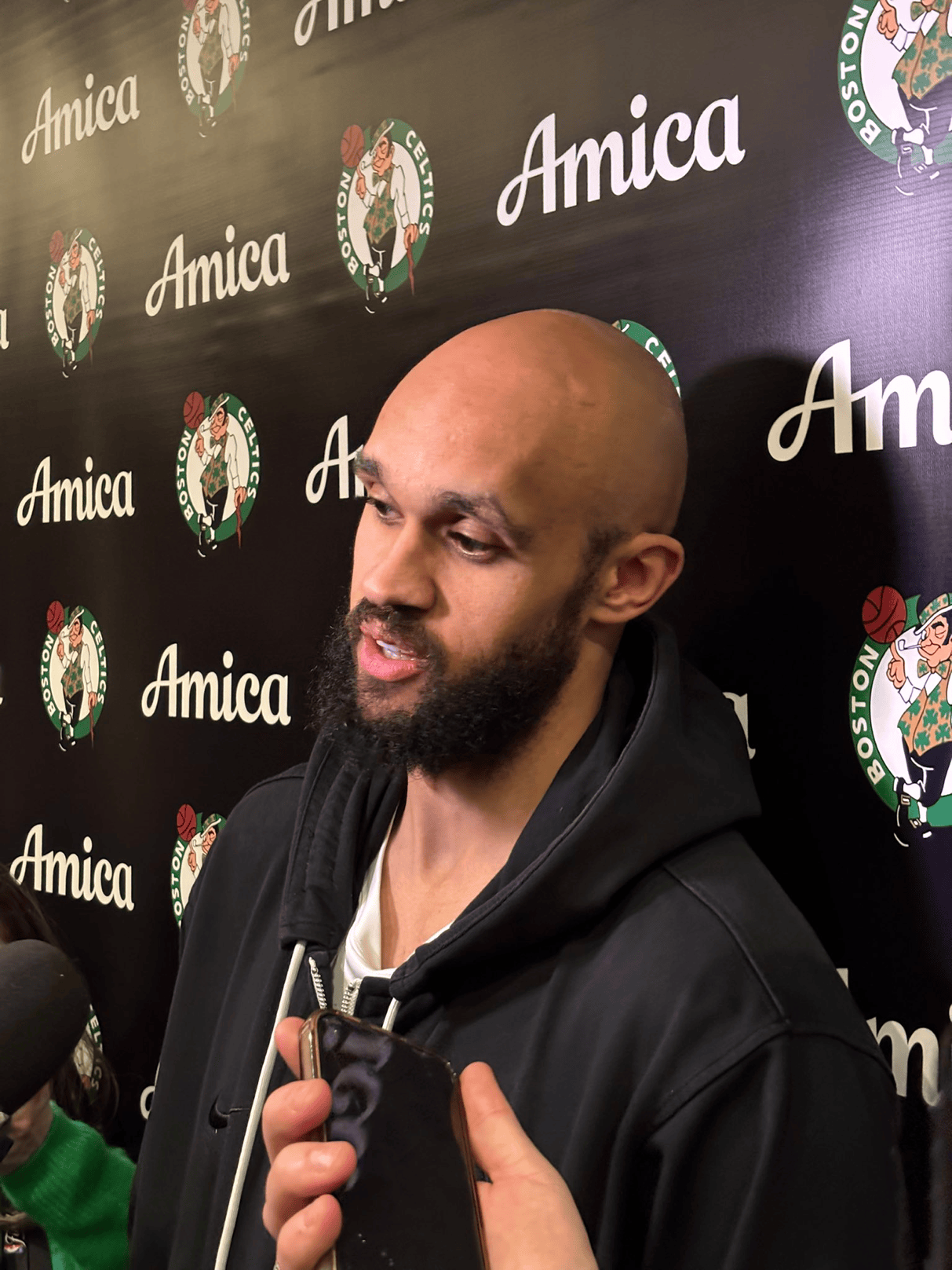 凯尔特人球员德里克-怀特接受了记者采访,谈到了本场比赛的防守,怀特表示:“我已经好久没盖过帽了,不少人都拿这事说我,所以今天必须得盖两个回来。”