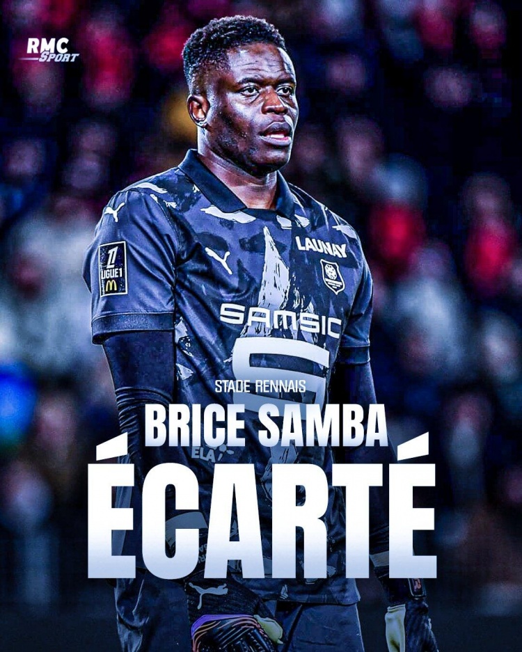 直播吧2月7日讯《队报》报道,雷恩门将布里斯·桑巴因丢球与主帅发生冲突,被踢出名单。
