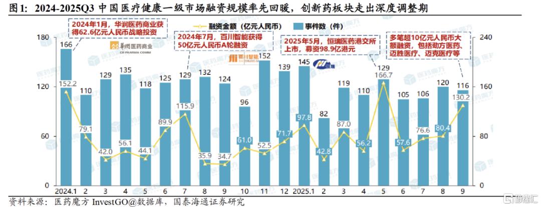2025年Q1-Q3医疗健康一级市场融资金额达795.3亿元,同比增长22.4%,尽管融资事件数略有下降,但呈现“资金先回暖、项目后跟进”的底部反转特征。