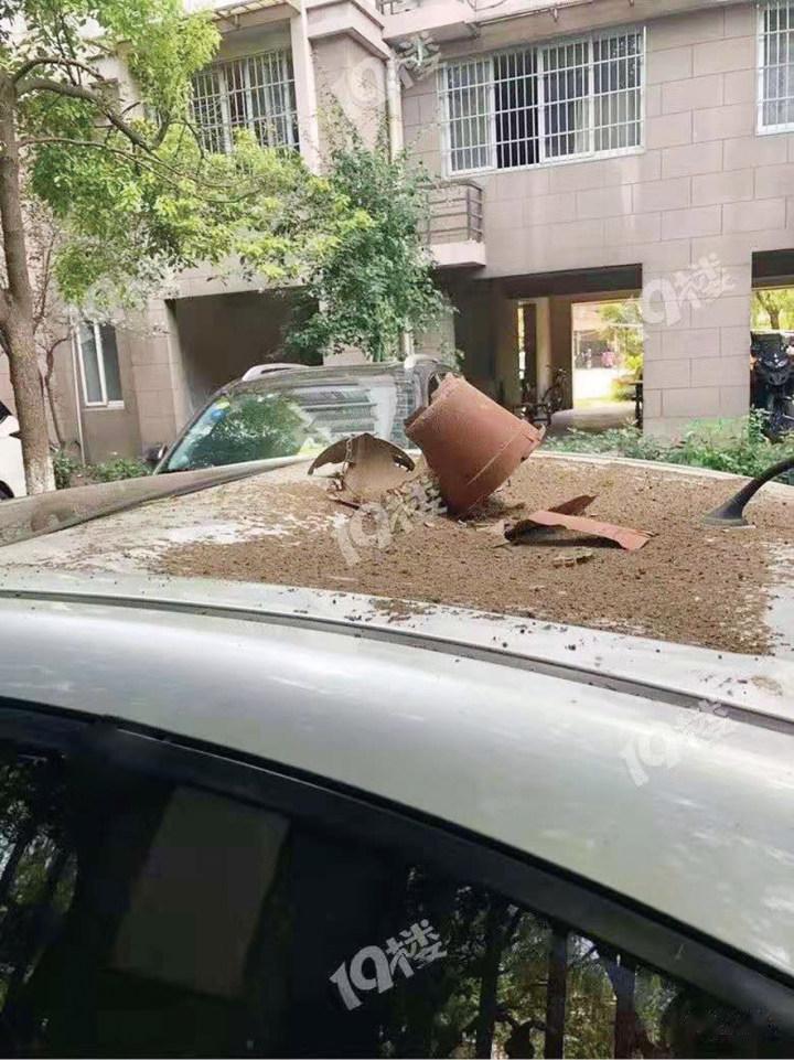 九江某小区高楼坠落六七个塑料矿泉水瓶
