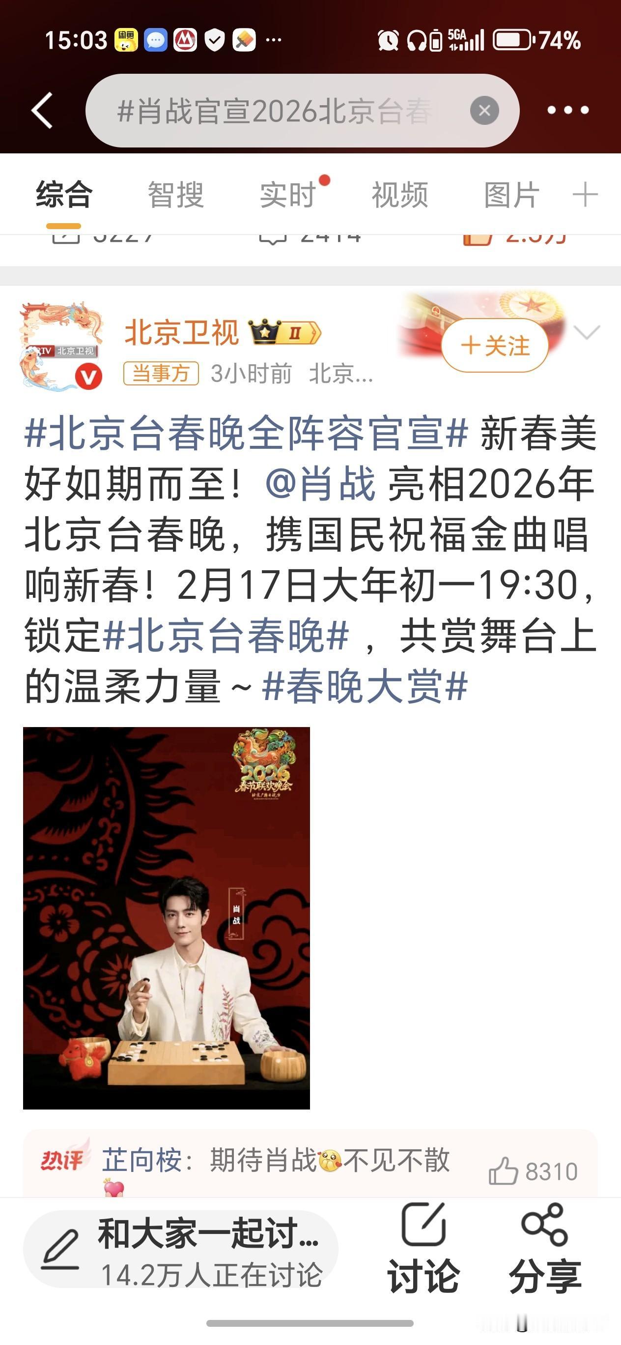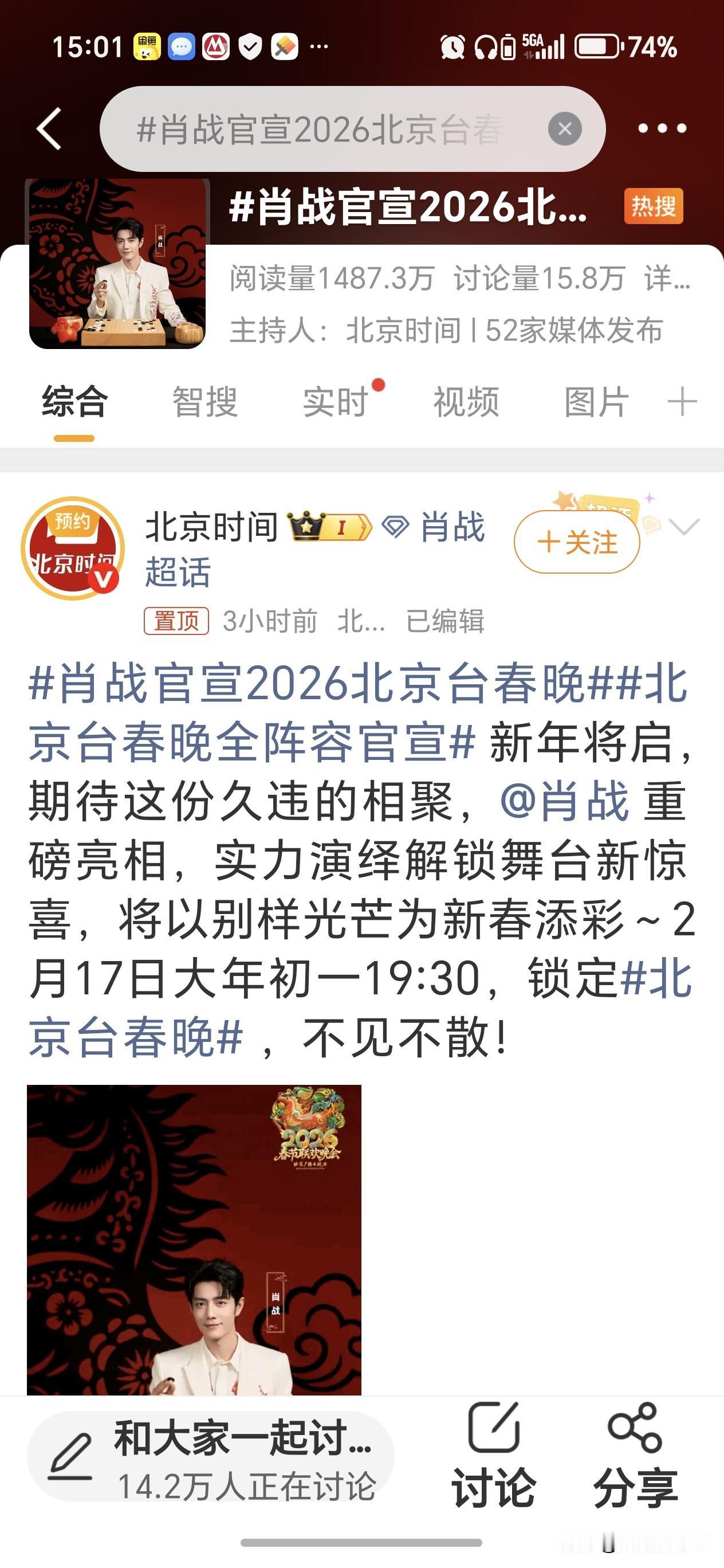 肖战官宣2026北京春晚,大年初一晚7:30分,不见不散,期待期待,大家去加热