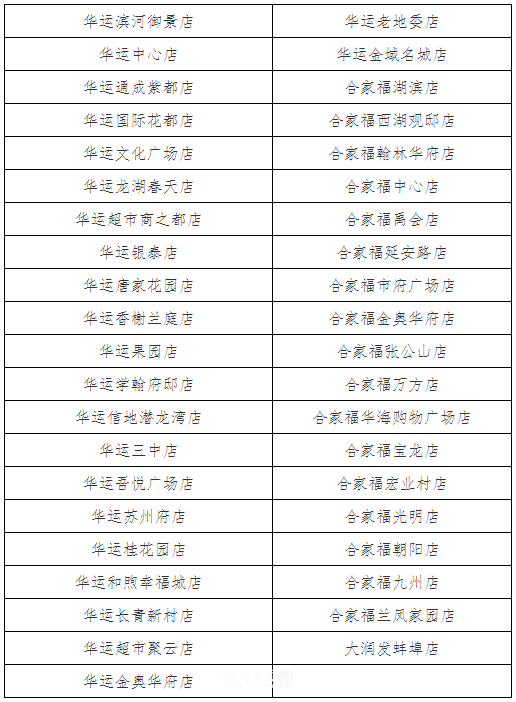 “惠民菜篮子”商店名单: