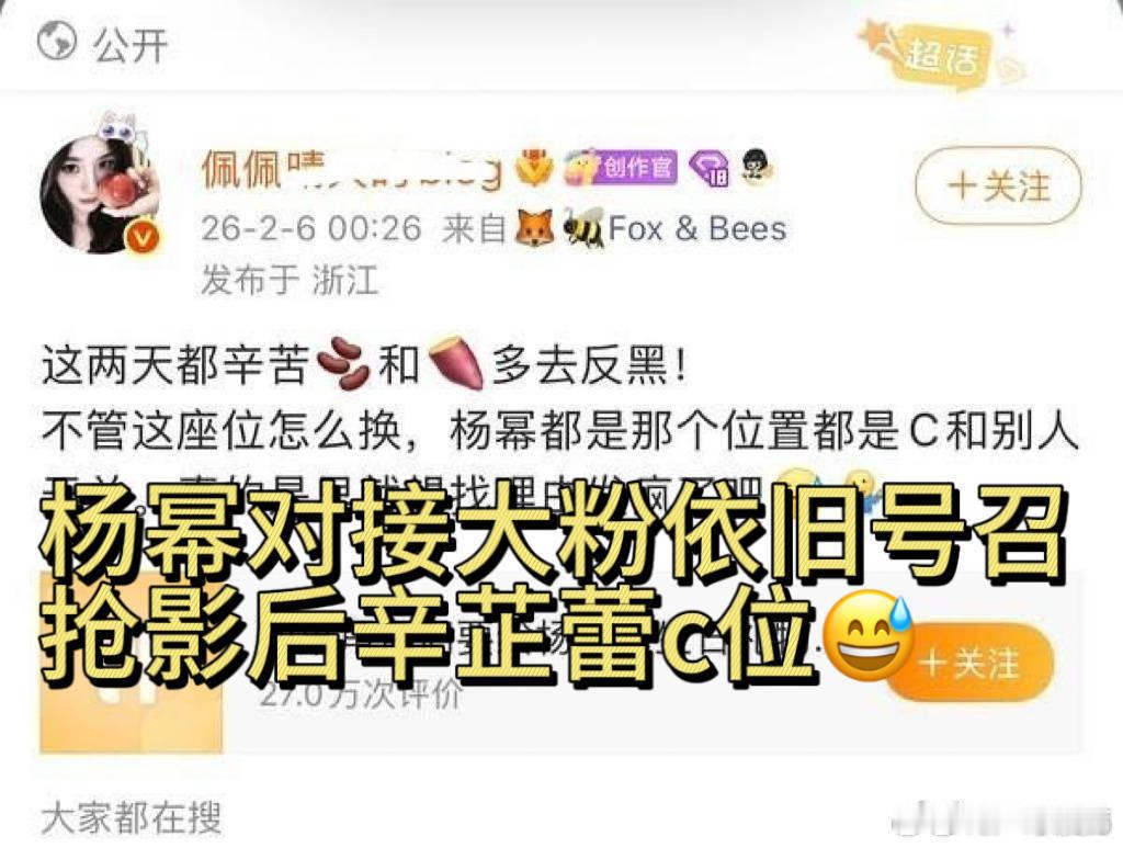 看时间 杨幂对接佩佩晴天,先是引导粉丝跟影后辛芷蕾争C位 微博之夜发博说明情况后