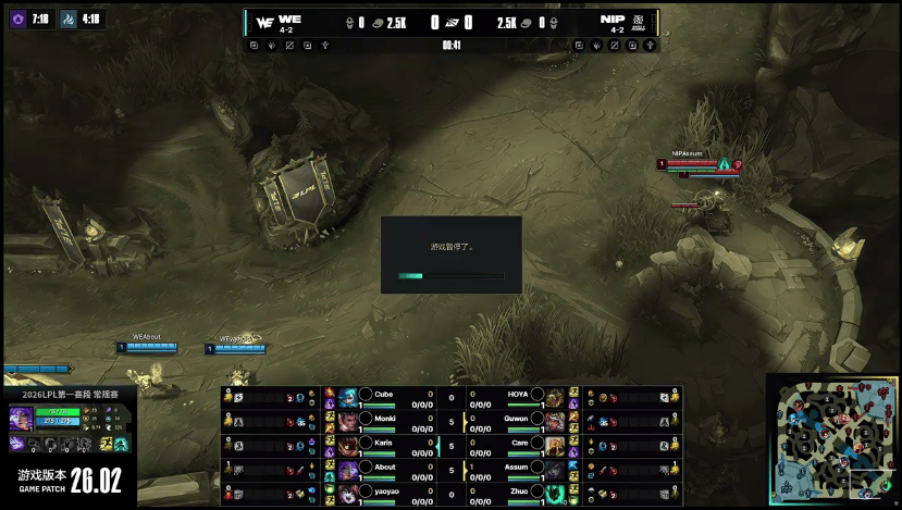 NIP对阵WE第一局刚刚开始,比赛进入暂停(目前已修复)