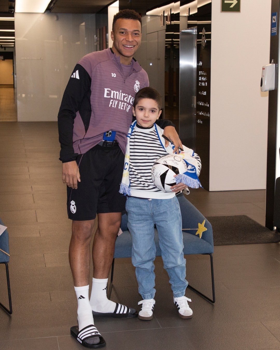 在训练场苦干一天的姆师傅看见小球迷 把手机往裤腰带里一塞就开始合影签名全安排