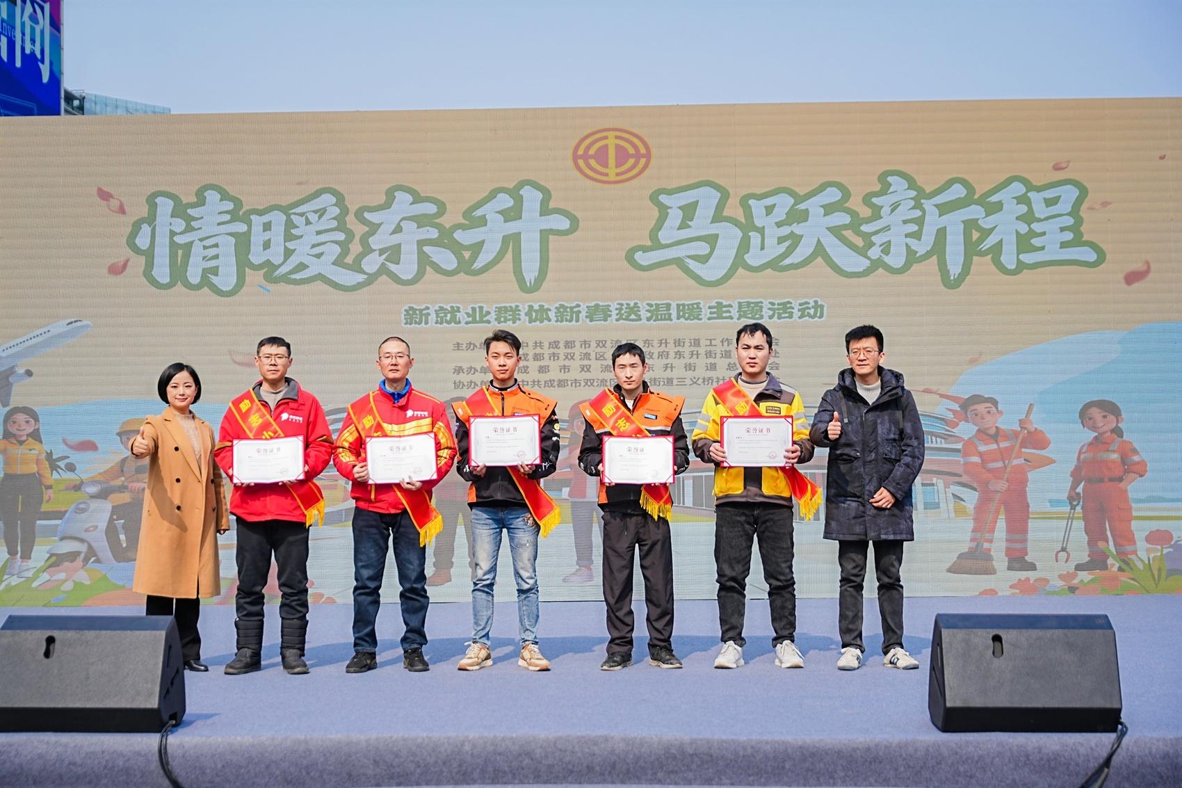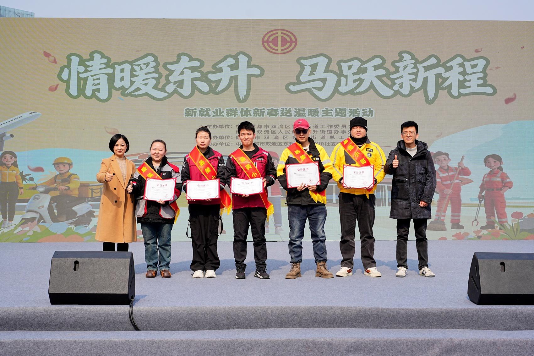 2月6日,在双流区委社会工作部的指导下,东升街道举办的新春慰问活动暖意融融。活动现场,600余名快递员、外卖骑手等新就业群体在享受糖画、写春联、义诊义剪等服务的同时,收到了暖心礼包,5名“励志小哥”和5名“最美小哥”获得表扬,现场收集的20余条“微心愿”被逐一记录。