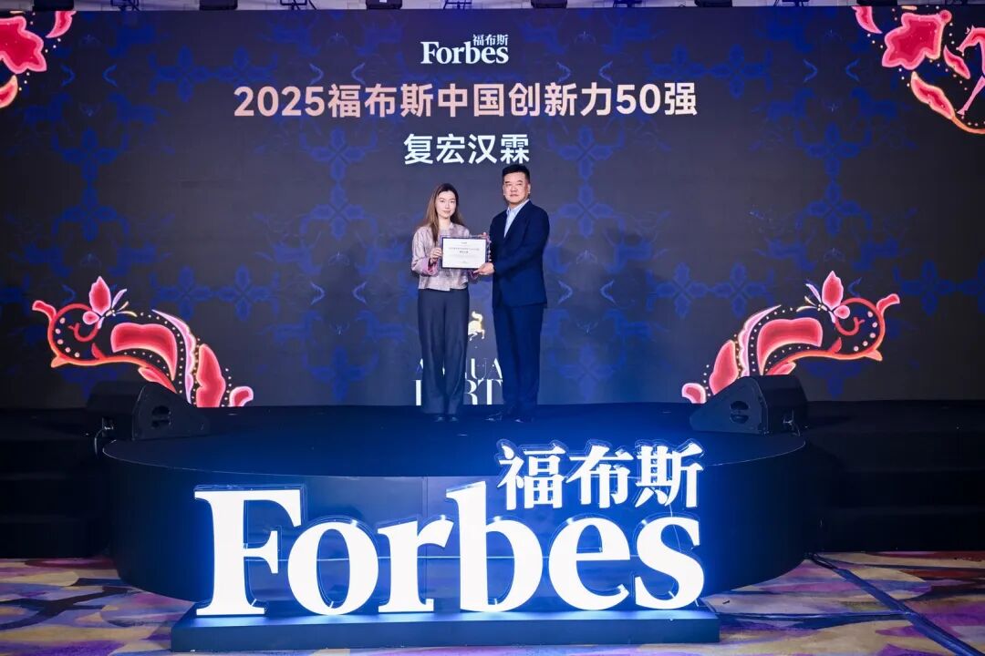 最后,福布斯中国为华封科技、澜起科技、翰森制药、信达生物制药、先导智能、复宏汉霖、文远知行的公司代表颁发了“2025福布斯中国创新力50强”奖项,表彰他们将不确定性转化为结构性机会,通过原创性突破建立长期竞争力壁垒的先锋行为。
