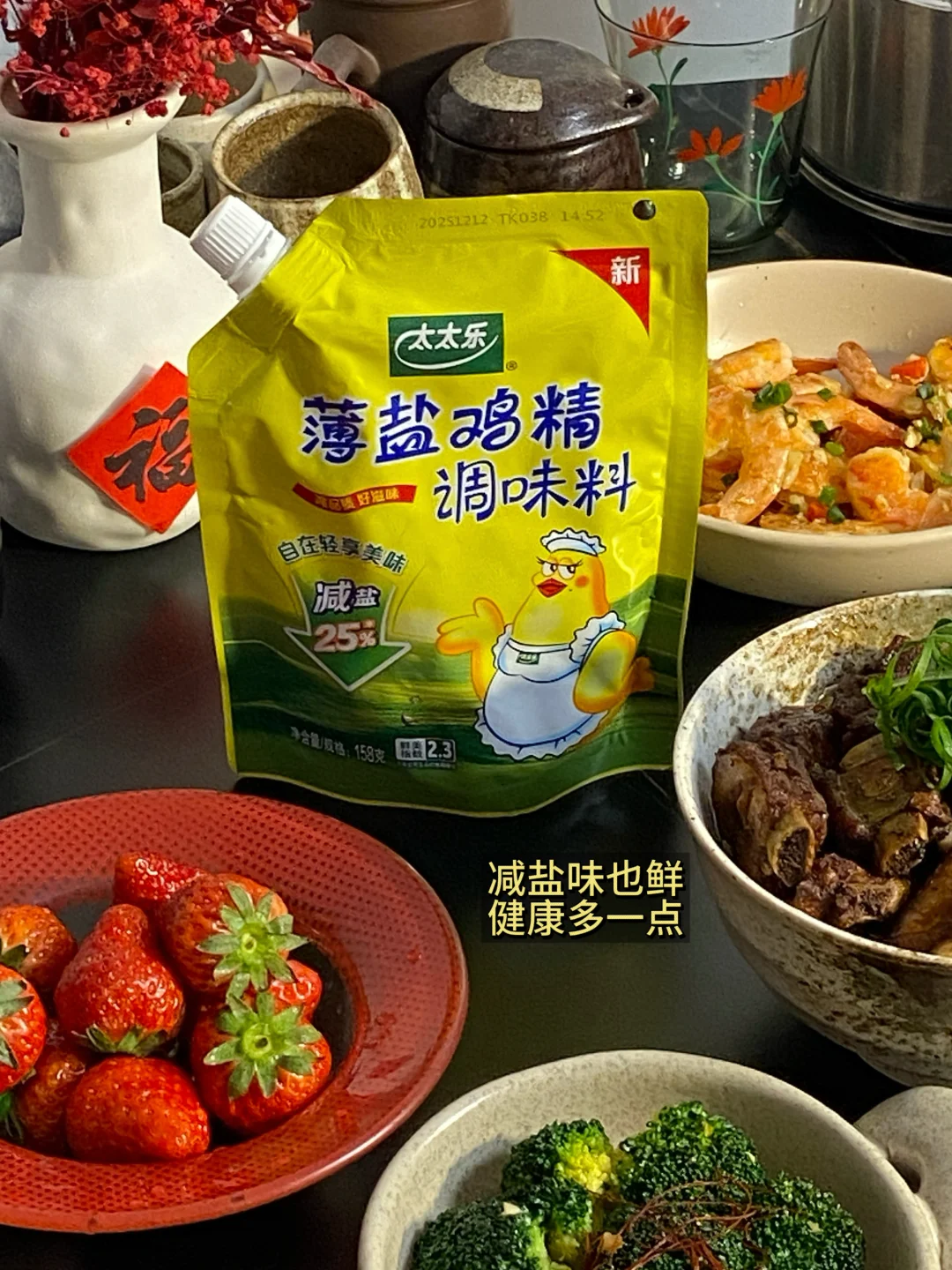 今天的红烧排骨妈妈说烧得可香了!那可不还是因为我的小妙招,出锅时候撒一点太太乐薄盐鸡精,严选鸡肉,工厂日均生产使用35000只鸡呢!我的品质之选,能一下子提鲜不少,烧出来的排骨口感丰富不少
