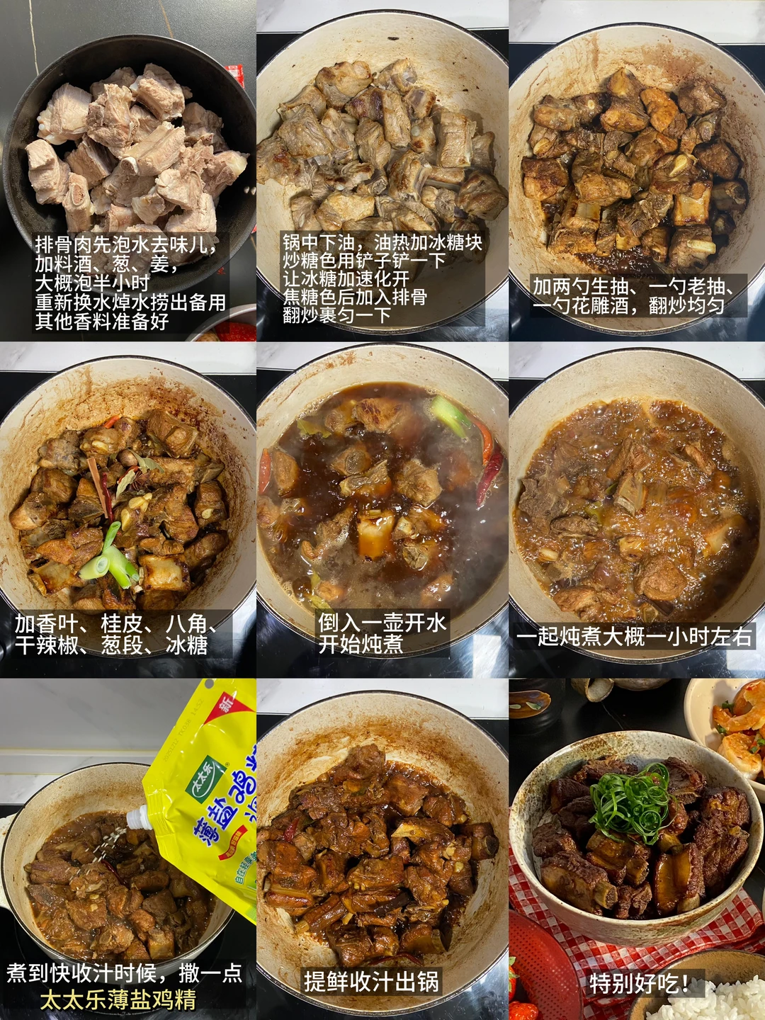 肋排2-3条|姜|葱|香叶|桂皮|八角|干辣椒|冰糖