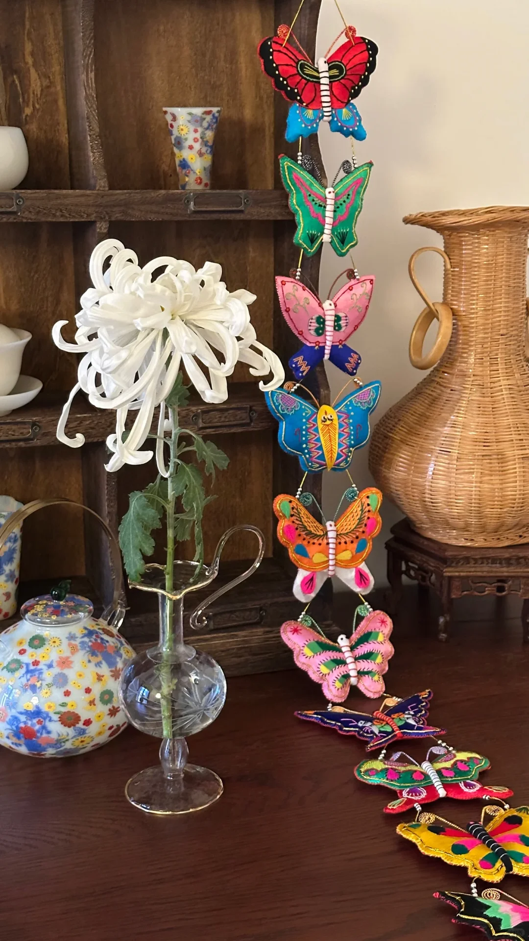 新年快到了 如果想挑一份不一样的礼物🎁 请看看这串来自大山的蝴蝶吧 这是我们去陕西宝鸡调研的西秦刺绣 色彩、纹样真的让人震撼… 这里没有千篇一律的产物 只有民族旺盛的审美力 这串挂件有10只蝴蝶 来自10位不同绣娘的心血 所以你看到的每一只 都带着她独有的性格🦋 十只蝴蝶 = 把福气叠在家里✨ 马年挂在玄关或客厅 就是灵动又吉祥的新年装饰 送人也很合适 因为这是独一份的心意 不是复制出来的商品