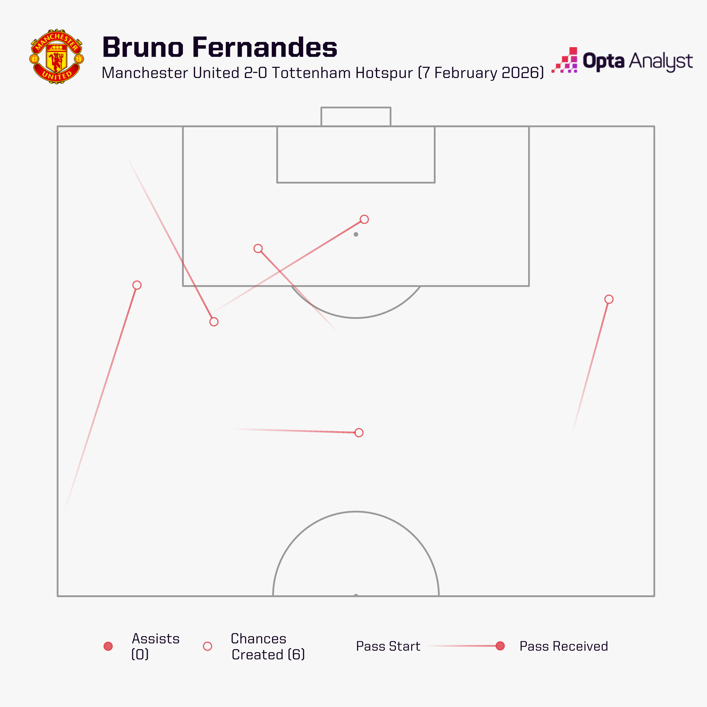 根据OptaAnalyst的统计,布鲁诺-费尔南德斯本场比赛有8次射门,6次创造机会,总计14次创造射门机会。这是2024年10月以来,首次有球员在单场英超联赛里创造出如此多的射门机会(上一位是萨卡,对阵南安普顿,也是14次)。