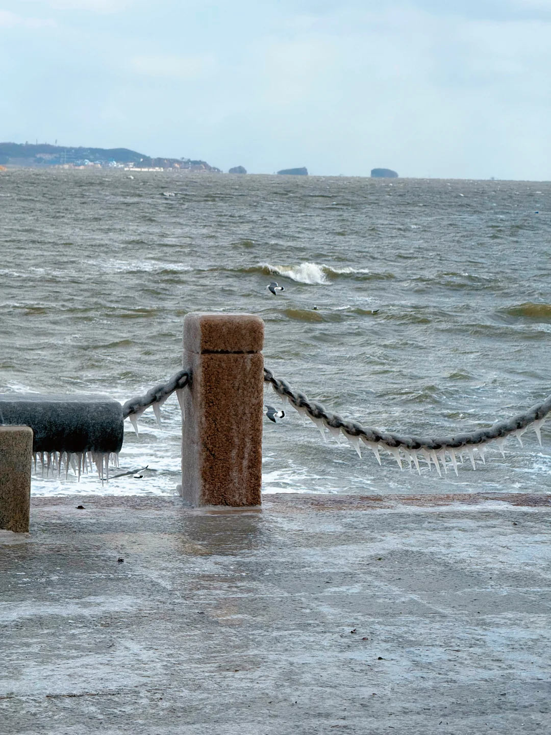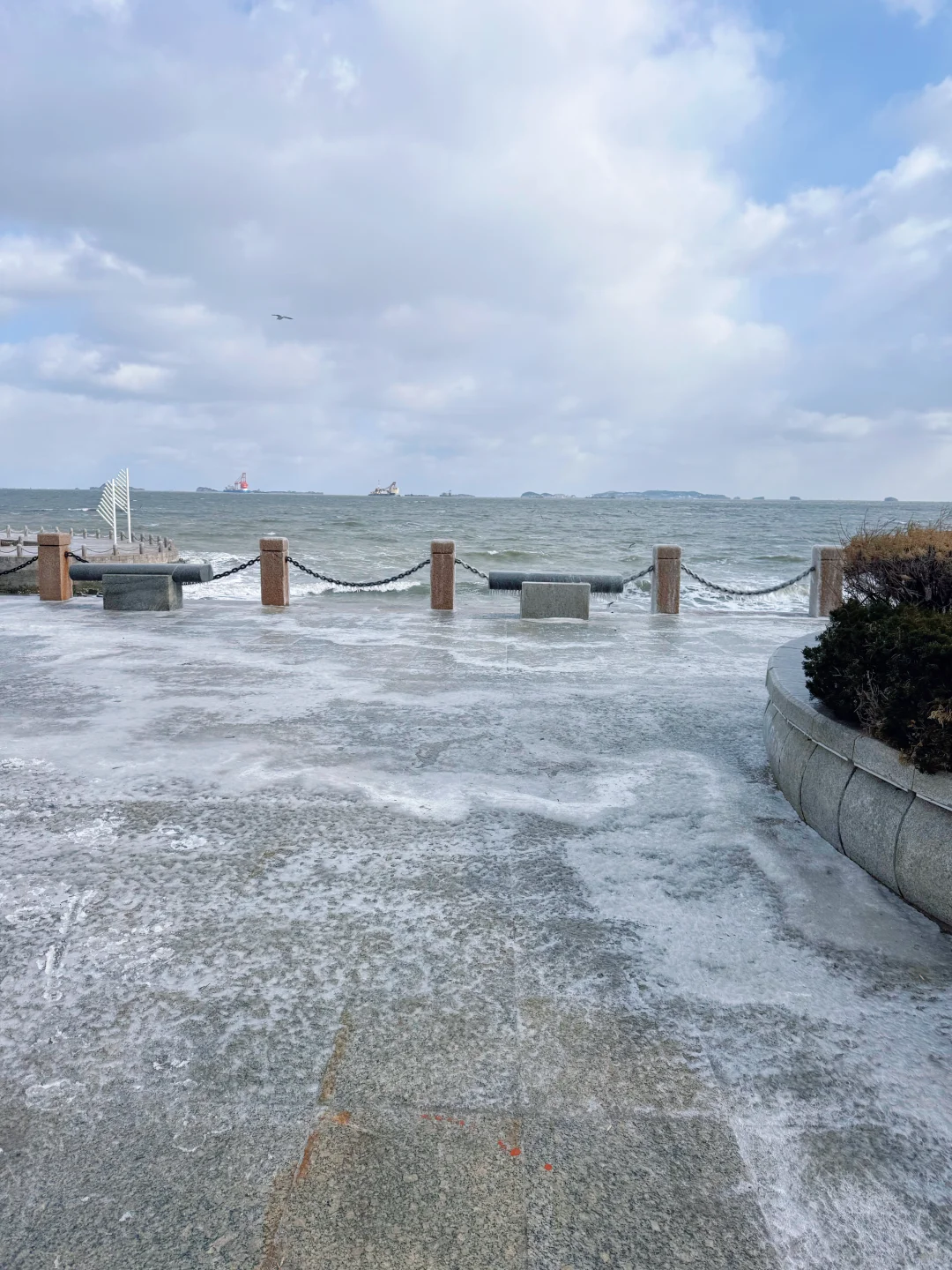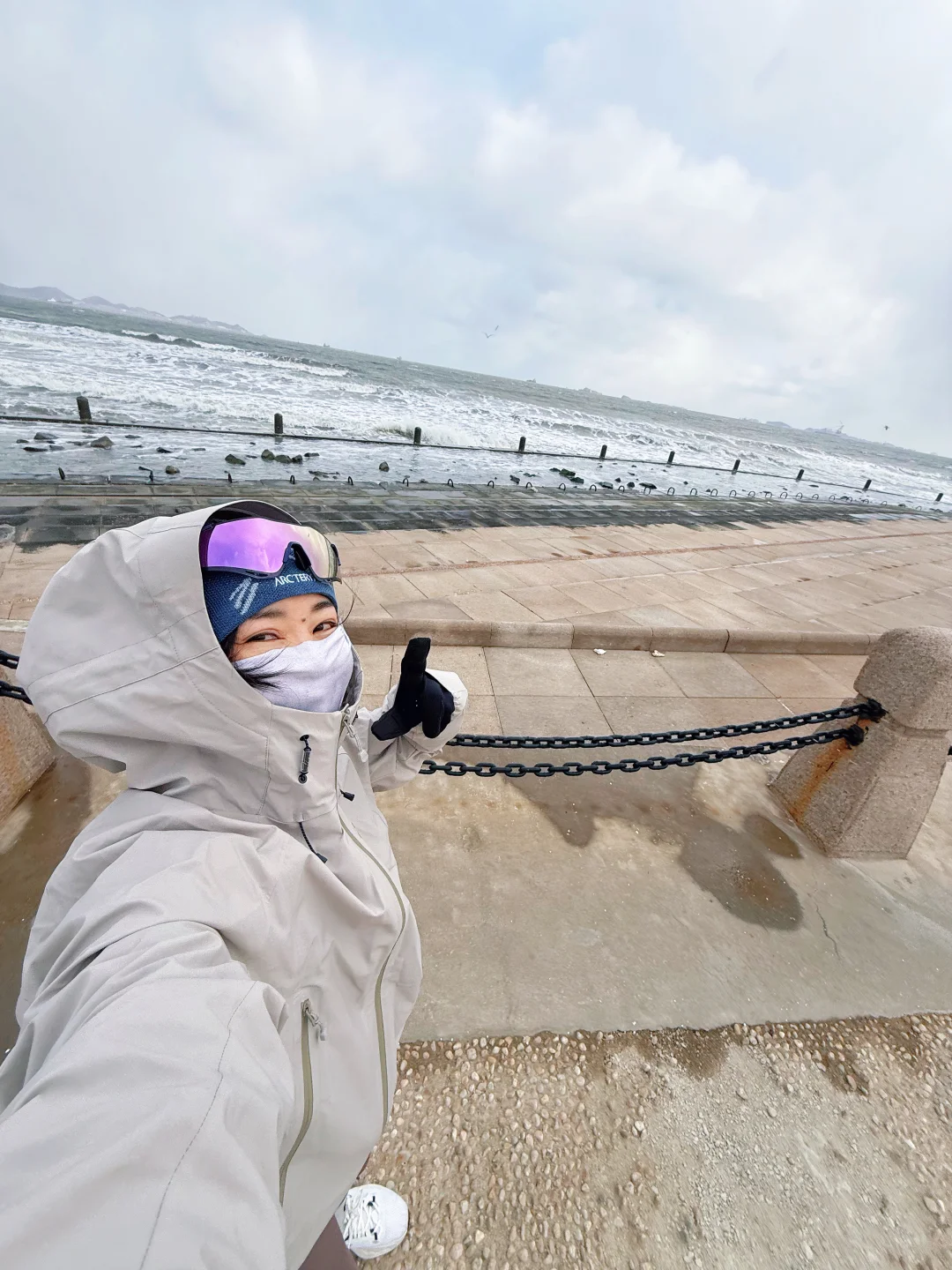 听师傅说今天是烟台很冷的一天 天啊!早上只有我一个广东游客在海边跑步! 我肯定是傻了!沿着海滨路往返跑了11公里 羊毛衫+夹棉外套+冲锋衣 跑的时候不冷,停下来拍照手指脚趾冻到痛 海风真是大,路面也结冰了!吹脸上像刀割! 回程差点打车回酒店,跑步人👉🏻这步非跑不可吗? -