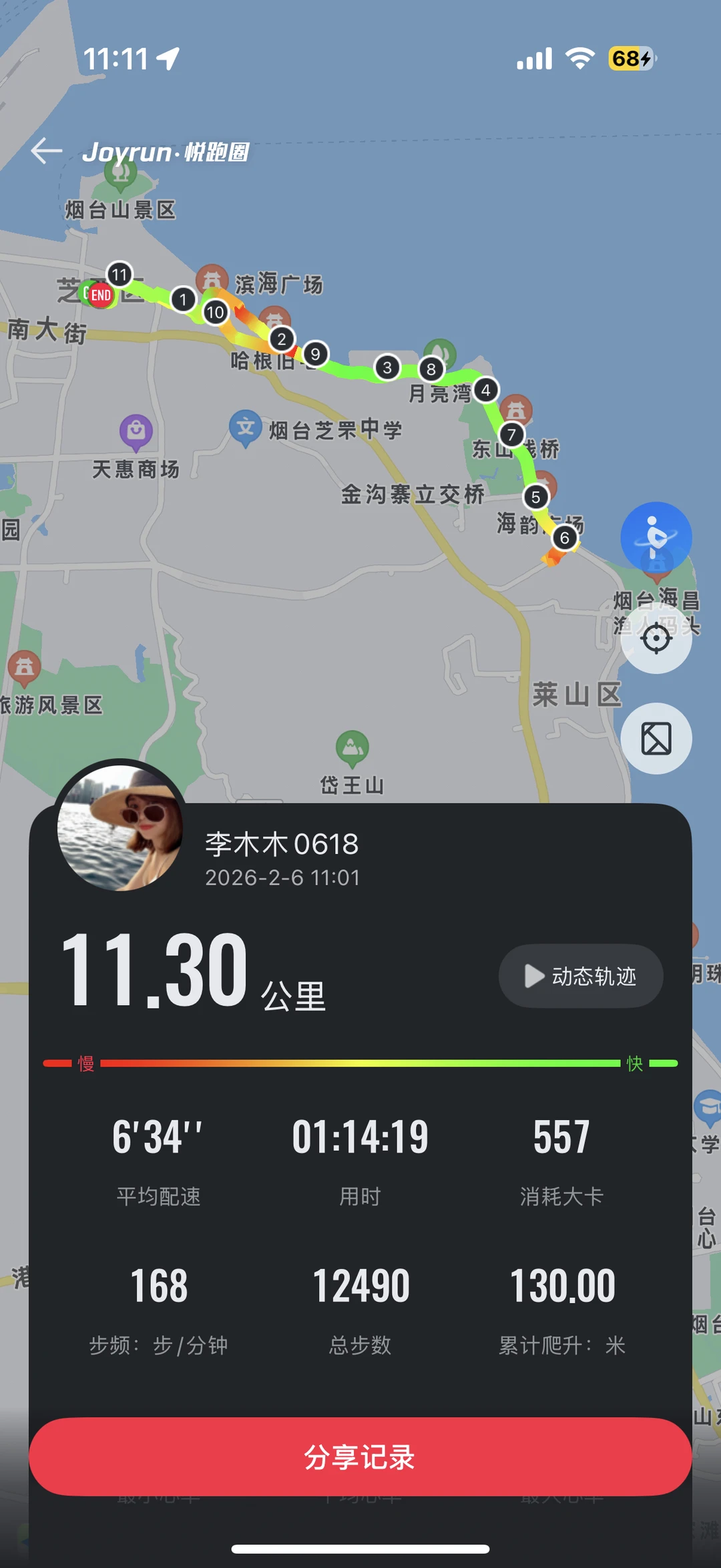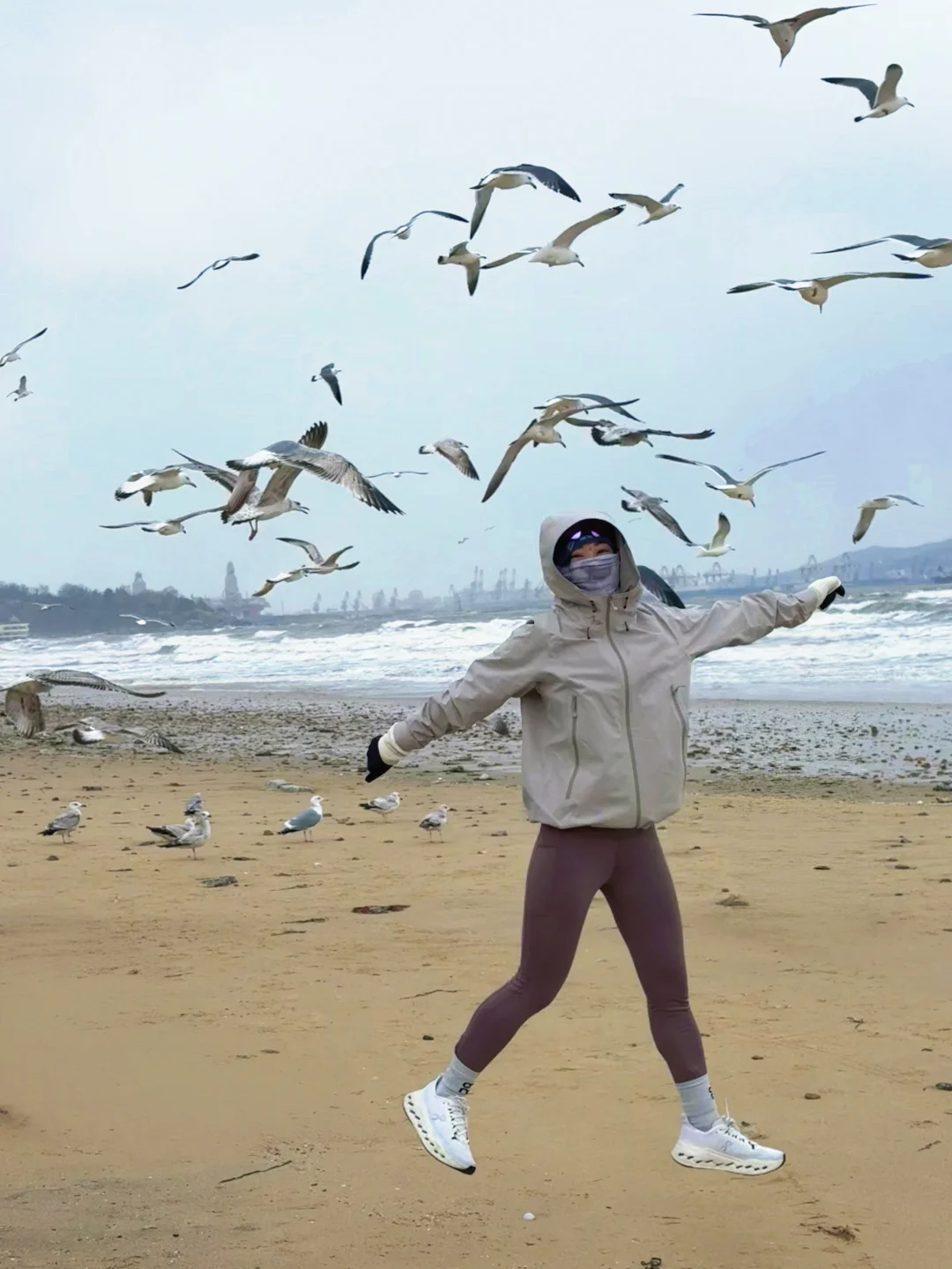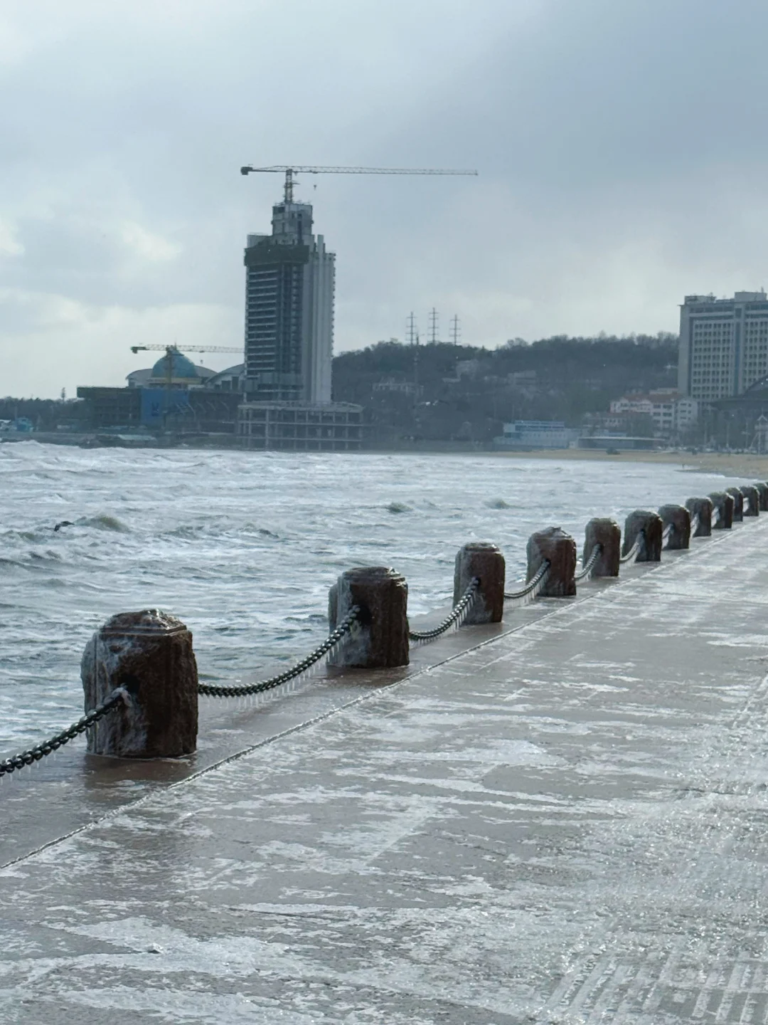 听师傅说今天是烟台很冷的一天 天啊!早上只有我一个广东游客在海边跑步! 我肯定是傻了!沿着海滨路往返跑了11公里 羊毛衫+夹棉外套+冲锋衣 跑的时候不冷,停下来拍照手指脚趾冻到痛 海风真是大,路面也结冰了!吹脸上像刀割! 回程差点打车回酒店,跑步人👉🏻这步非跑不可吗? -
