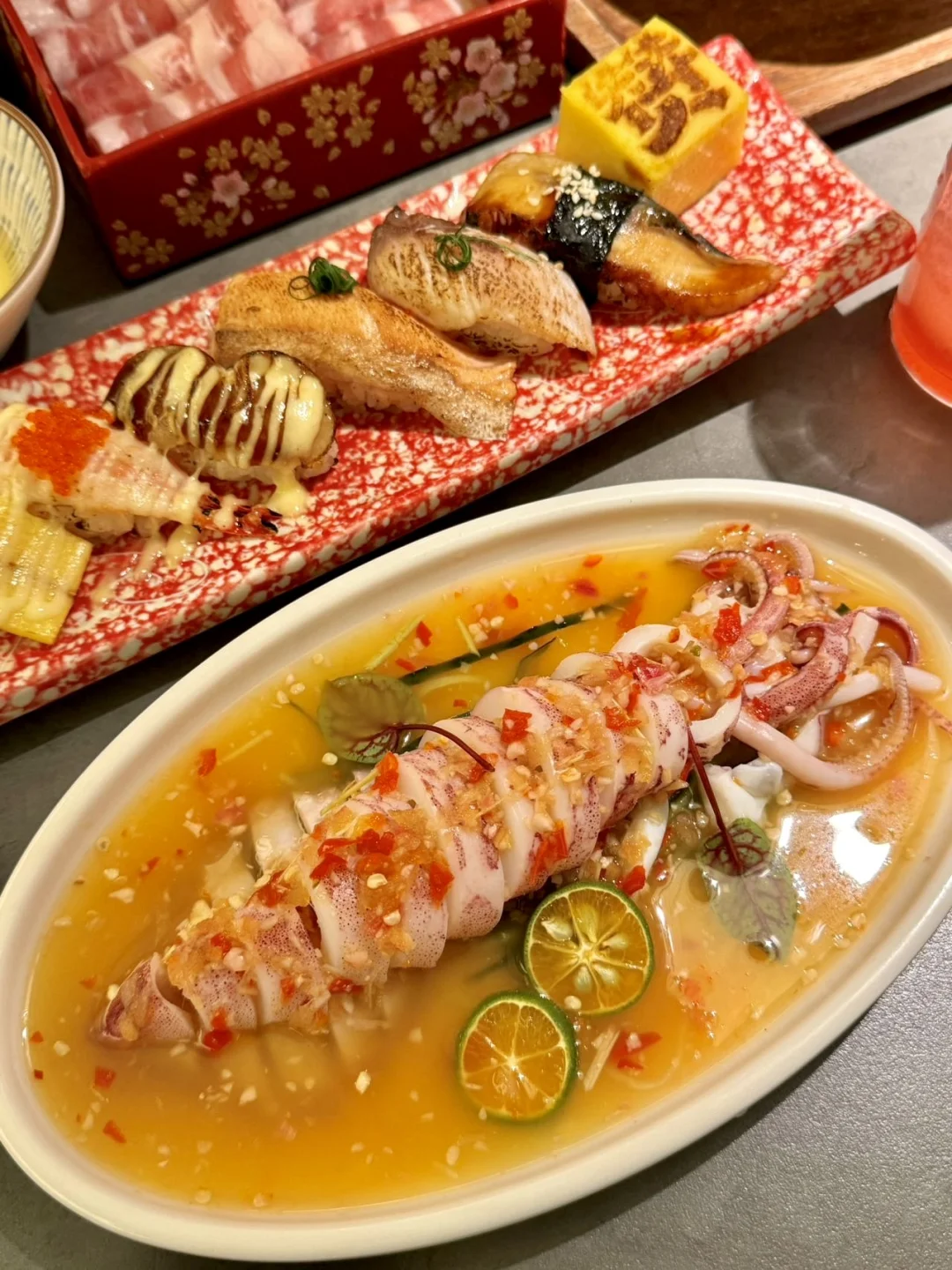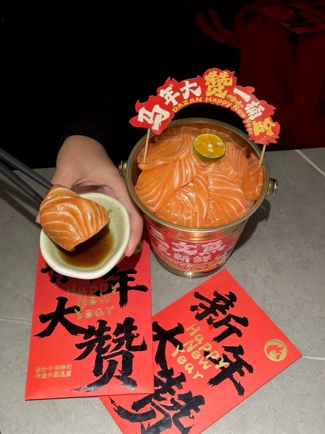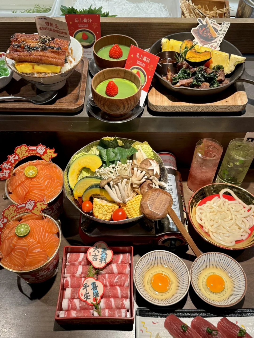 - 放假就约上朋友冲来汇一城了🏃♀️ 本三文鱼脑袋真的坐不住了……🥹🥹 跟朋友坐下就先安排上9.9💰幸福加马 有2️⃣个三文鱼一桶金和5️⃣个利是封🧧 都是厚切的三文鱼!看脂肪纹理就知道好吃😋 为了这个三文鱼一桶金我已经准备好二刷了!!🥳 吃完这桶三文鱼 2026好运get✔️✨ 还有“马上莓好”抹茶草莓布丁🍓 用的都是五十铃抹茶粉!DuangDuang的好嫩~ 谷饲肥牛寿喜锅暖fufu的冒着福气♨️ 泰式鱿鱼的海岛奇遇🦑酸辣开胃又爽脆 再来杯红苹果气泡水🍎红运➕🈵‼️