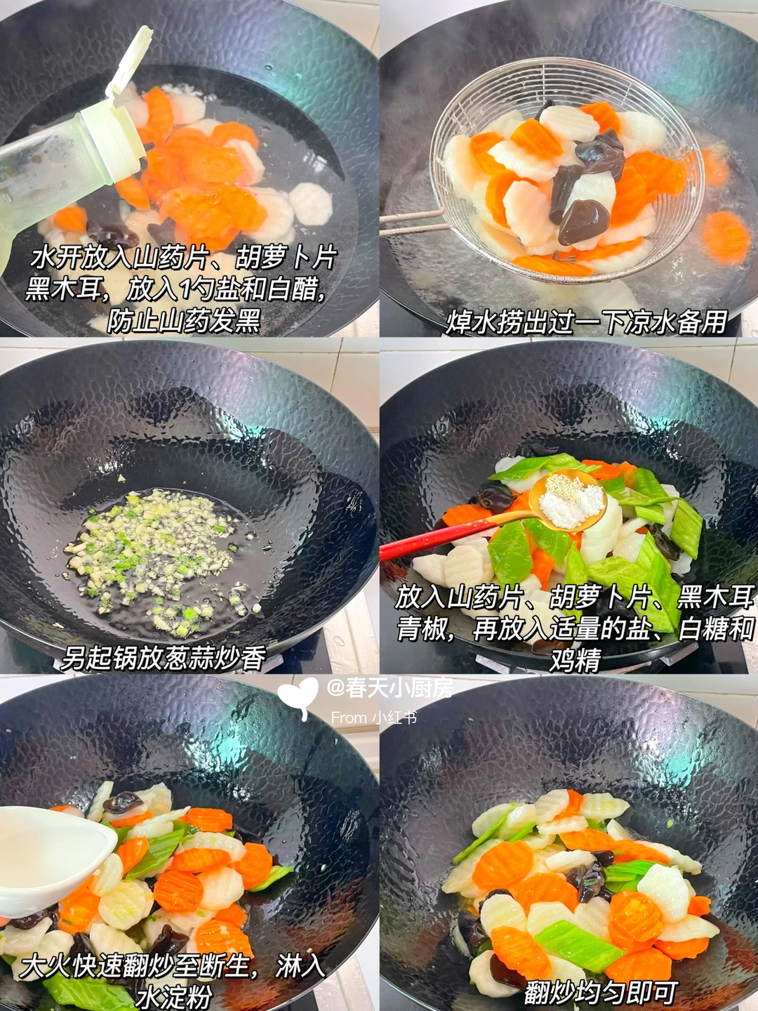 🌻木耳泡发时间不宜过长,常温泡1-2小时即可🌻全程大火快炒,山药和木耳都不要久煮,保持脆嫩