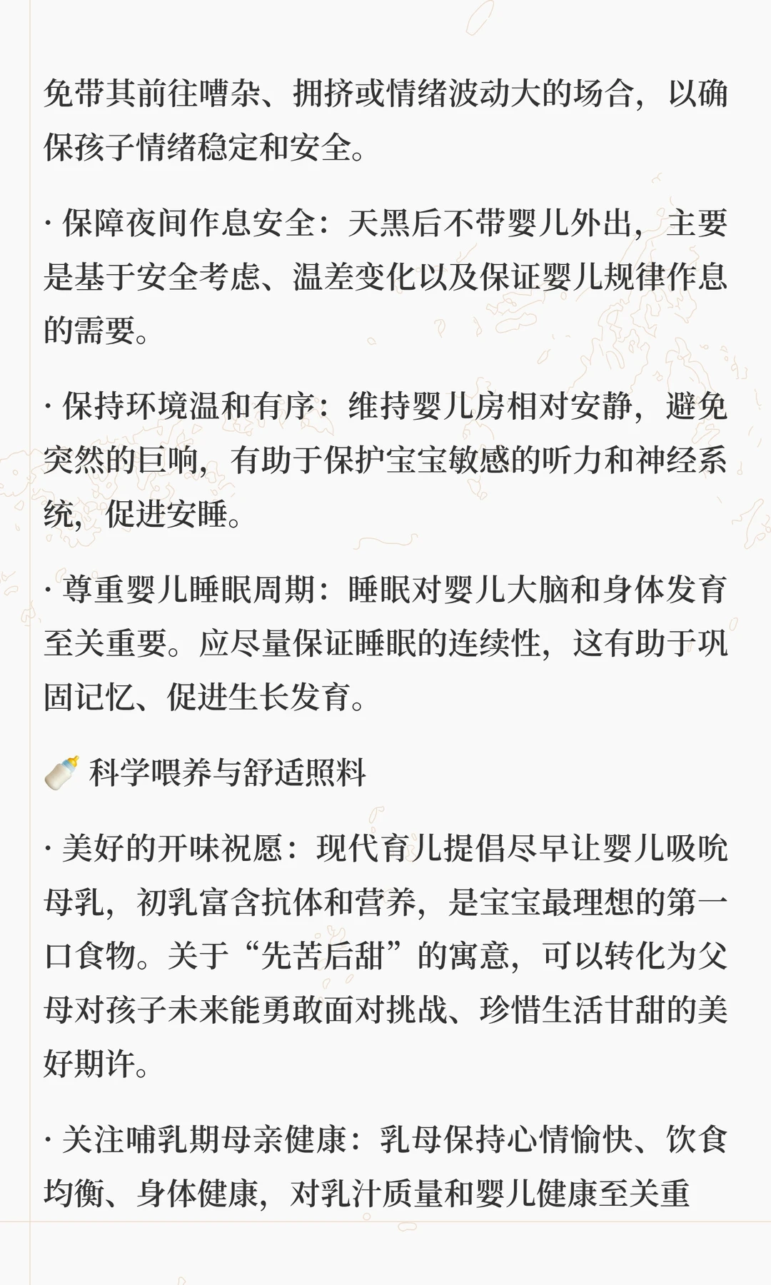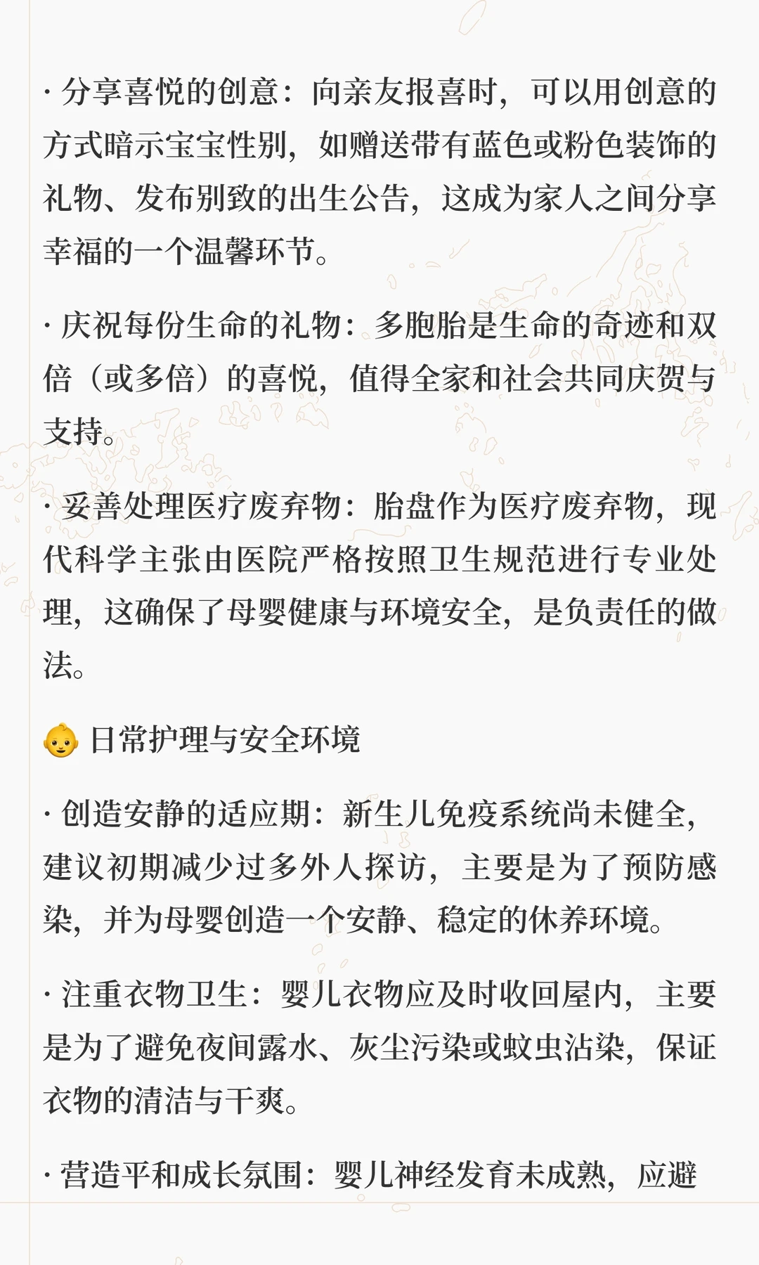 新生儿出生后,亲友带来喜悦,胎盘由医院处理确保安全。新生儿期需安静、清洁环境,科学喂养和护理。科学育儿注重健康、安全和积极成长,传承美好寓意,迎接未来。