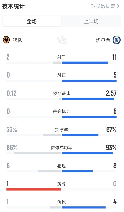 直播吧2月7日讯英超第25轮,狼队对阵切尔西,半场战罢,狼队暂0-3落后。