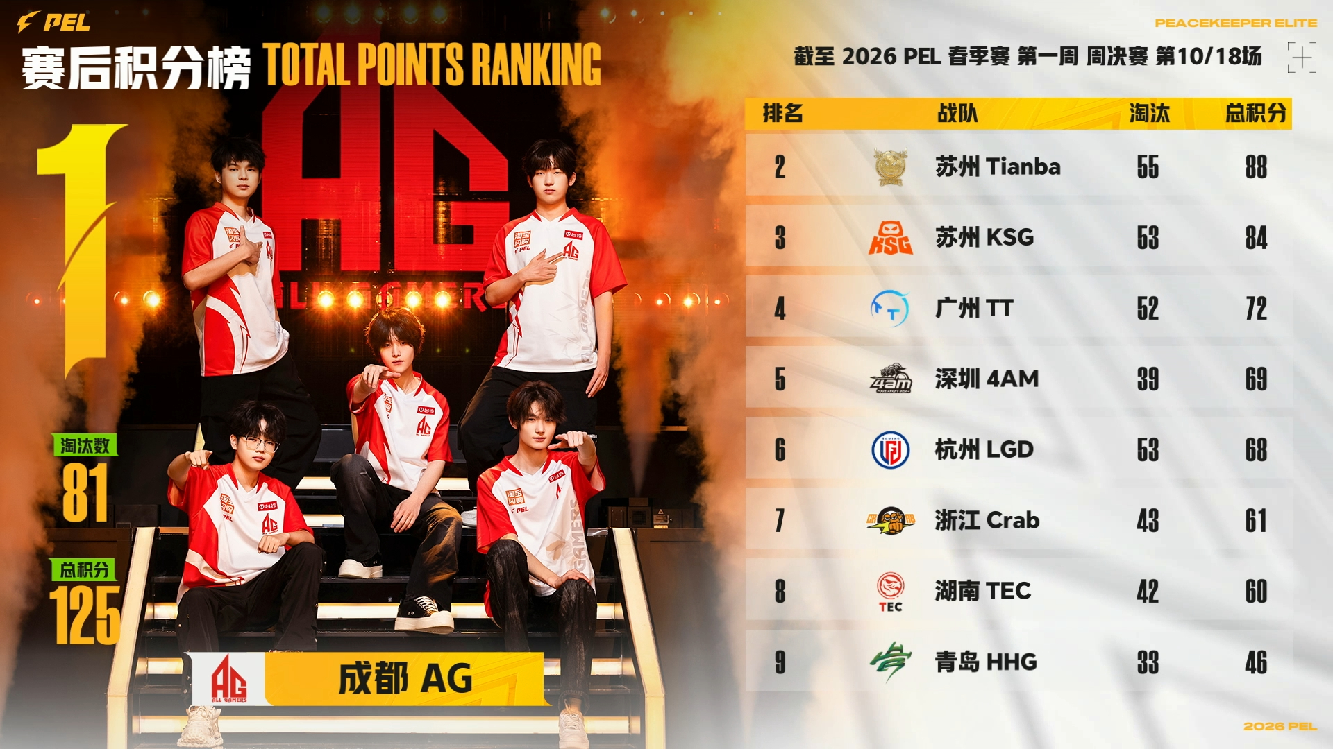 AG稳稳拿下周决首鸡,积分直接登顶榜首,全员全程火力拉满疯狂收割,这状态拿周冠简