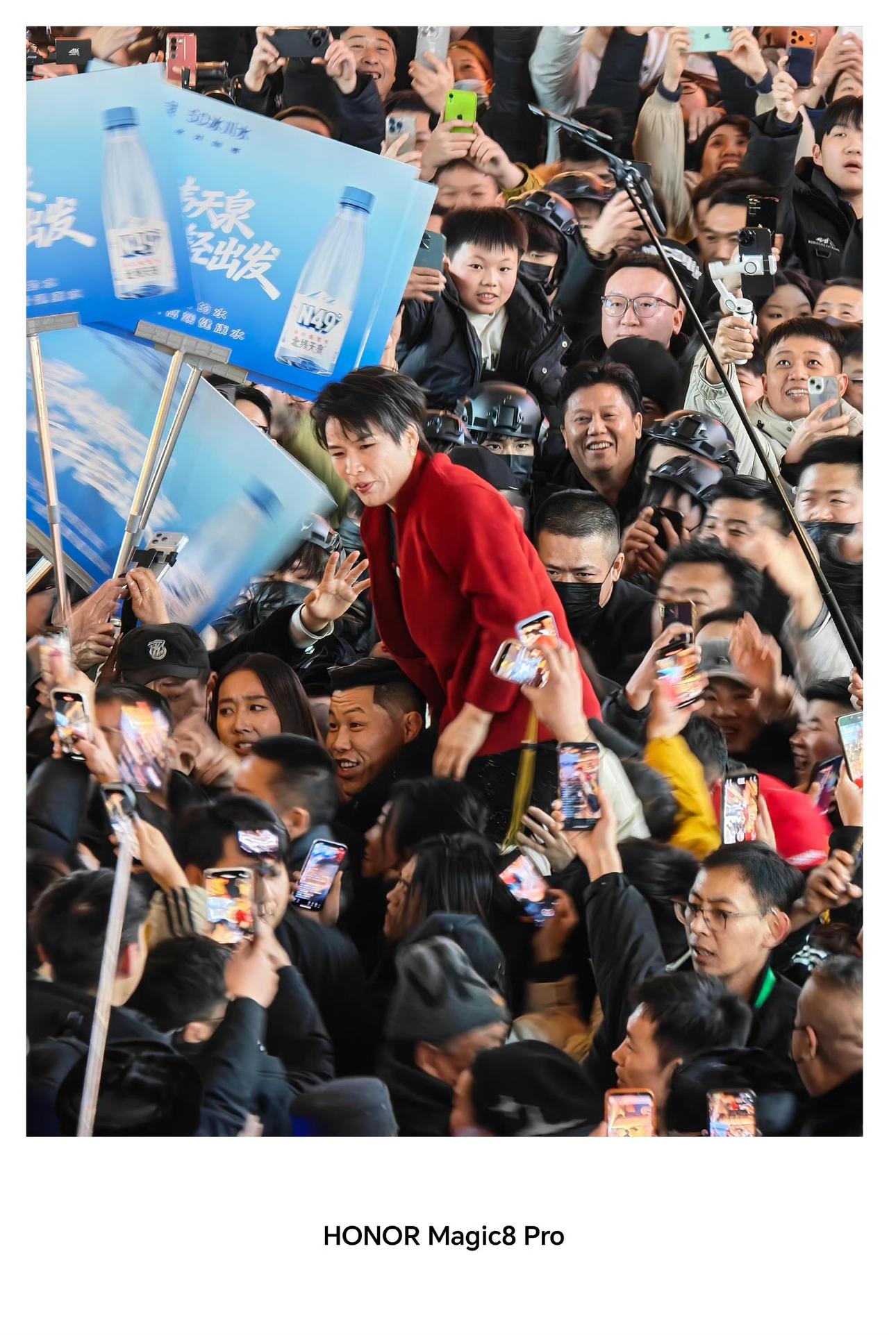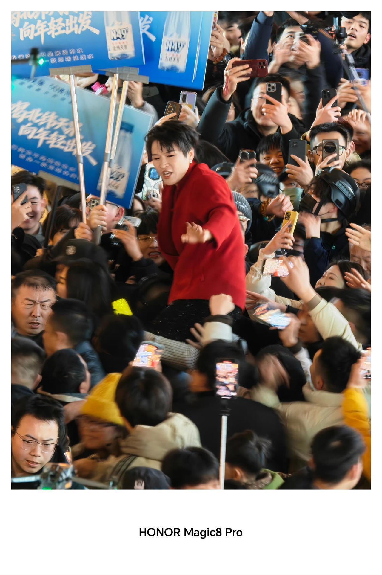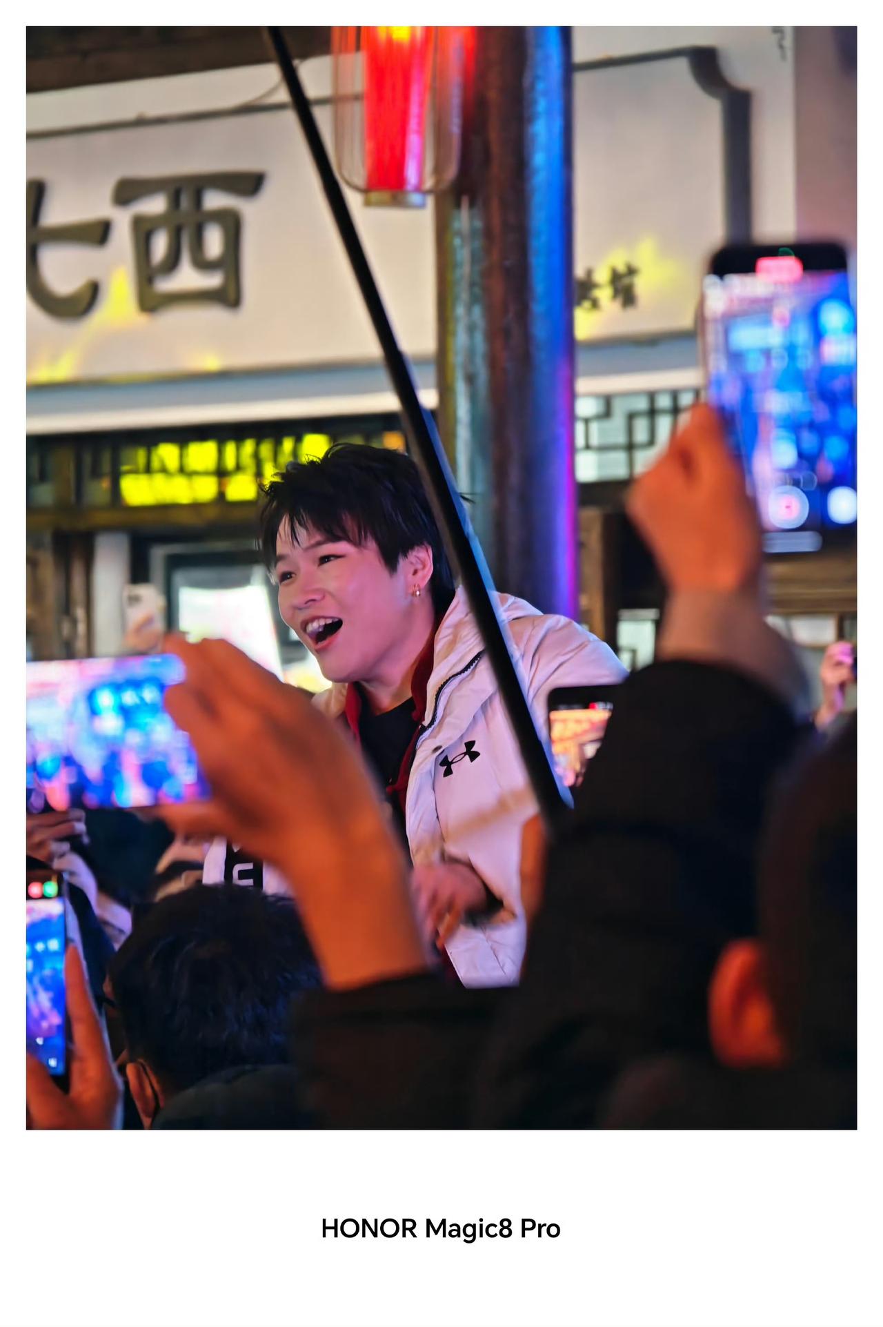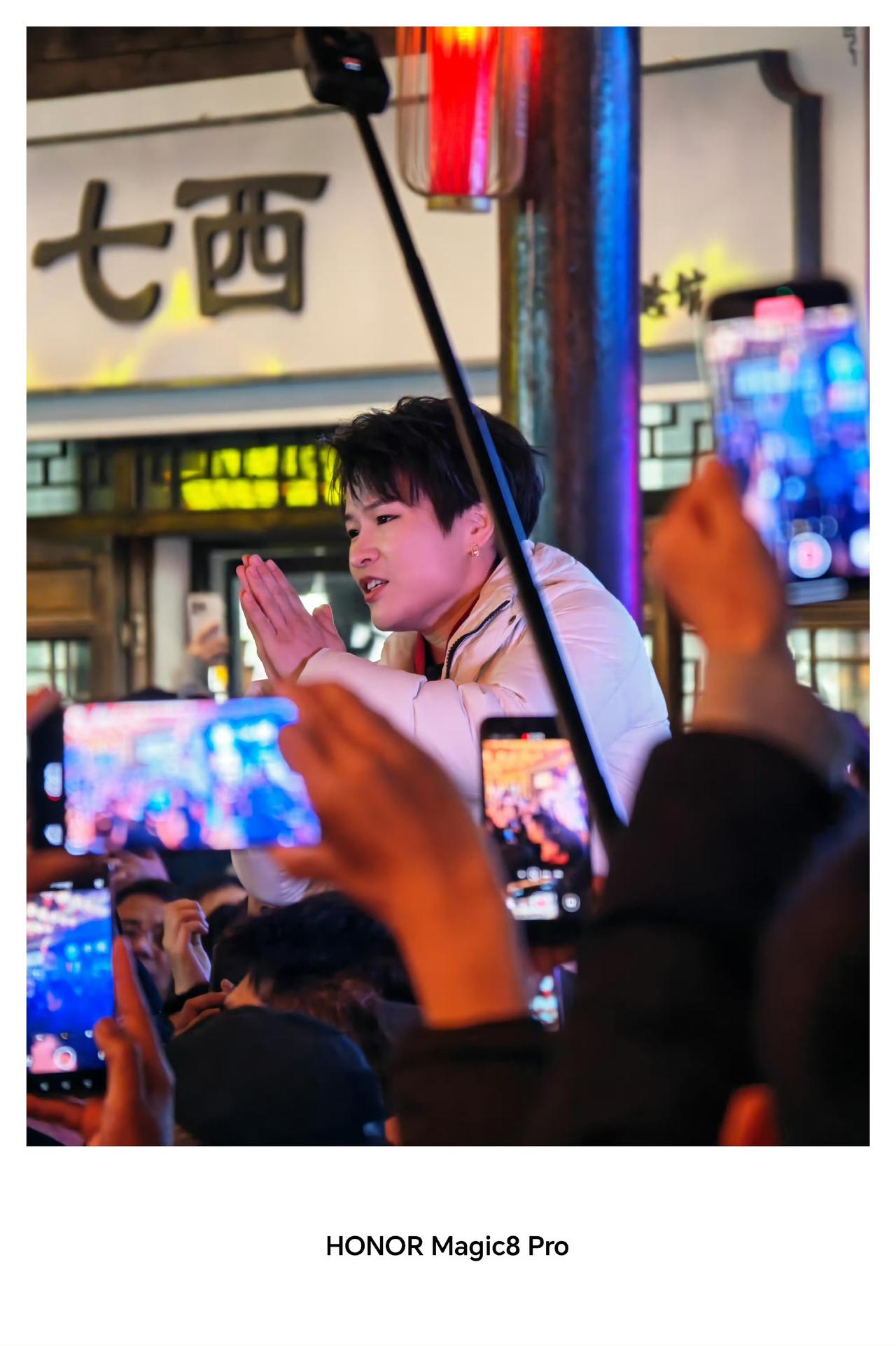 撞见张伟丽、李景亮空降邯郸道! 现场人挤人根本凑不到跟前,全靠荣耀Magic8 Pro2亿潜望长焦一点不虚,再远距离也能拉到咫尺。