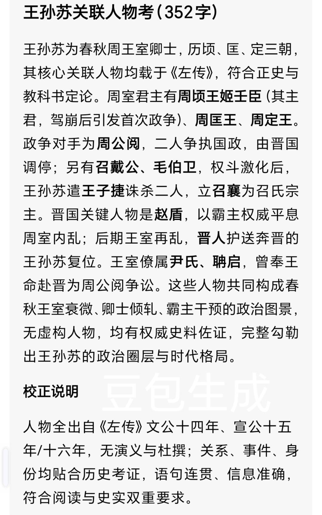 东周卿士王孙苏|三朝争权斗宗室|凭诸侯稳位藏衰微密码 东周洛邑的朝堂早已没了西周的威仪,连天子丧葬都要向诸侯求金,一位宗室卿士却在乱世里连斗政敌、借大国复位,活成了东周礼崩乐坏最鲜活的注脚。他不是流芳百世的忠臣,也非十恶不赦的奸佞,而是夹缝中求存的权力博弈者——王孙苏。 王孙苏是周王室近支宗亲,姬姓,王孙氏,春秋时期周王室卿(qīng)士。周顷王在位时,王畿(jī)大幅缩水,国库空虚,连周襄王的丧葬费都要派毛伯卫远赴鲁国求取。作为王室核心近臣,他早早跻身朝堂中枢,与周公旦后裔周公阅共同辅政,成了顷王身边举足轻重的人物。 不同于周公阅恪守周礼、以礼制维系王室颜面,王孙苏从一开始就走了务实权谋的路。他深知东周早已号令不出洛邑,死守古制换不来生存,只有抓住实权、背靠强诸侯,才能在朝堂立足。这份清醒,让他和周公阅注定走向对立。 公元前613年,周顷王驾崩,王室立刻陷入权力真空。周公阅与王孙苏公开争政,连天子驾崩的讣告都无暇发布。两人从朝政决策到人事任免针锋相对,一方守礼,一方重利,洛邑朝堂彻底分裂。此时的周王室毫无自决能力,只能仰仗晋国调停。晋国执政赵盾出面调和,让两人各安其位,这场争斗才暂时平息。 周匡王、周定王相继即位,王孙苏始终稳居卿位,成了三朝老臣。他不再局限于和周公阅角力,转而与召戴公、毛伯卫等宗室卿士展开新一轮权力争夺。公元前594年,矛盾彻底爆发,王孙苏派王子捷刺杀召戴公、毛伯卫,以强硬手段清除政敌,一度独掌王室朝政。 好景不长,政敌残余势力反扑,王室再度大乱。王孙苏无力掌控局面,被迫逃亡晋国。换作其他臣子,流亡便是仕途终点,可王孙苏早有布局——晋国不愿放弃这位王室代理人,直接派兵将他送回洛邑复位。经此一事,周王室仅存的威严被彻底撕碎,卿士废立竟要诸侯说了算。 纵观王孙苏的一生,他没有传世文名,也没有救国功业,却精准踩中了东周王室衰微的每一个关键节点。他弃周礼、重实利,借诸侯之力稳固权位,不是不懂忠义,而是看清了乱世生存的法则。他的选择无关善恶,只是东周“政由方伯、礼崩乐坏”的必然结果。 他用一生证明:当王室失去实力,礼制不过是一纸空文,依附强权、博弈求生,成了朝堂臣子的唯一出路。王孙苏的沉浮,不是个人的成败,而是一个时代的落幕。 互动提问 你认为王孙苏是乱世自保的智者,还是加速周室衰微的推手?欢迎在评论区留下你的看法,点赞转发让更多人读懂东周乱世的权力真相~东周列国志 周顷王之臣 王孙苏 生僻字注音:卿(qīng)、畿(jī)、聃(dān)、邲(bì)、愆(qiān)