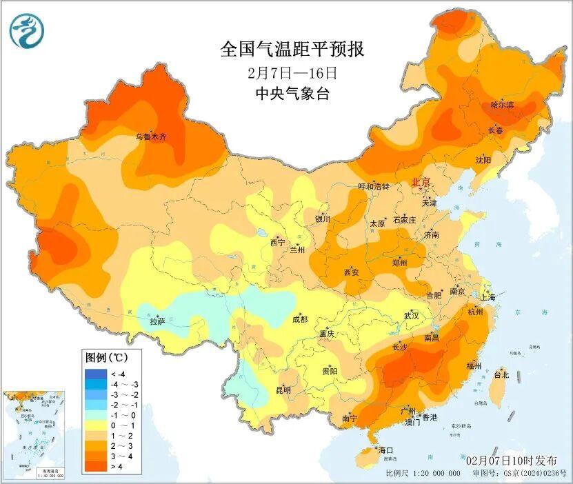 未来10天,我国大部地区较常年同期偏暖。