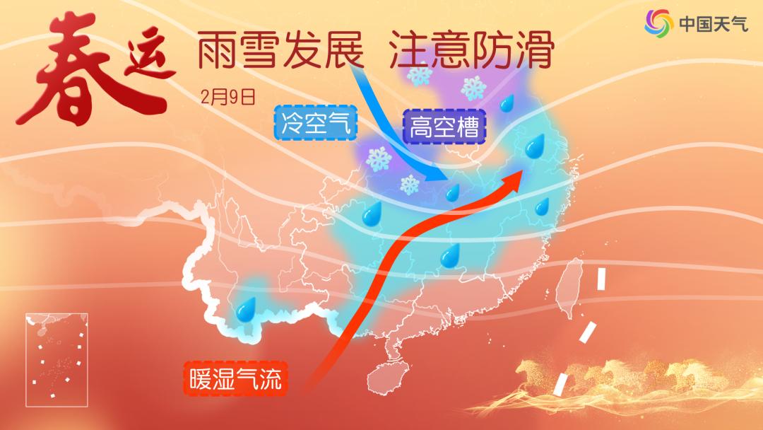 至于降水方面,冷空气控场,暖湿气流撤退,今天雨雪短暂收敛。明天起,伴随着高原槽东移,又会有一次较大范围雨雪天气登场,但因为水汽条件一般,降水强度总体不强,南方多地可能出现雨转雪再转雨的情况。