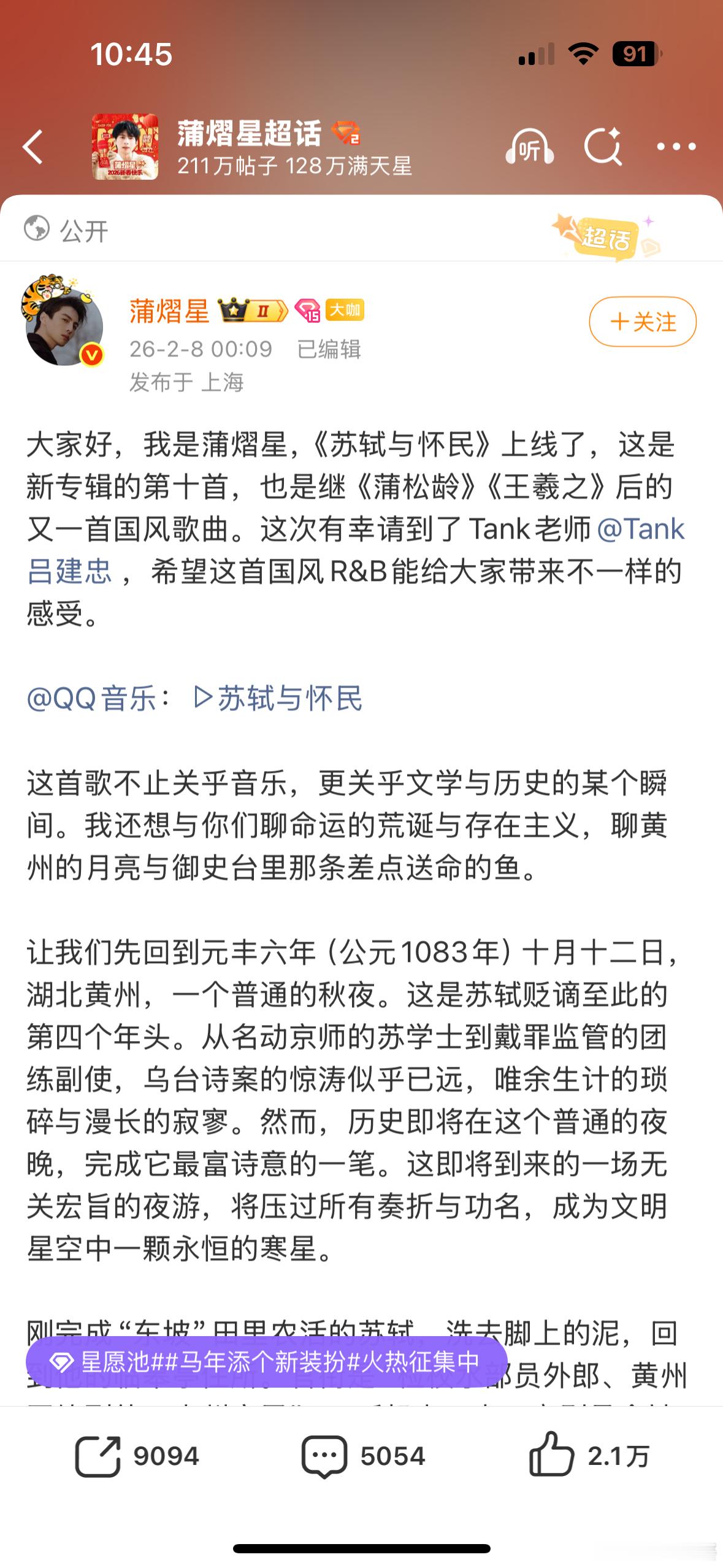 蒲熠星突然发现单条微博不能超2000字蒲熠星写新歌文案直接写嗨了,结果发现微博有