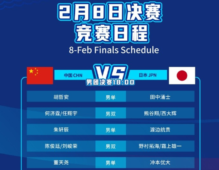 虎扑02月08日讯2月8日讯2026亚洲羽毛球团体锦标赛男团决赛中国VS日本将在今天的18点进行,目前双方阵容已经出炉,中国队变阵,胡哲安替代王正行作为一单出战。