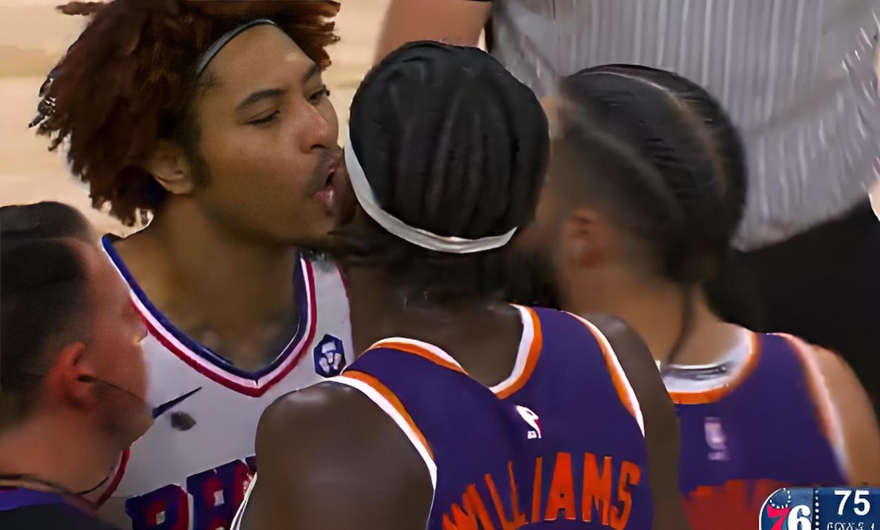 针尖对麦芒,乌布雷推倒狄龙,两人面对面互喷! 今天NBA的一场重头戏,太阳主场迎战76人。两队实力差不多,比赛过程打的也是打的非常激烈。 第三节比赛,太阳的一次进攻中,狄龙持球推进,76人乌布雷防守犯规,并将狄龙推倒在地。都知道狄龙不是善茬,感觉吃了亏的他迅速起身,找到乌布雷想与他理论一番。后者也不甘示弱,二人险些大打出手,幸好被队友拉开。 两队的比赛还没有结束,双方战至第三节,76人81-71领先太阳。狄龙目前得到17分2篮板,乌布雷16分3篮板2助攻。两人互喷难分伯仲,数据上也不相上下,比赛好看。