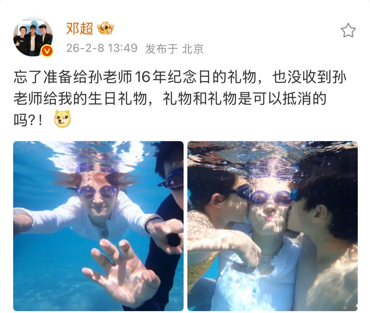 邓超孙俪小花水下吻邓超想拿生日礼抵消孙俪周年礼 哈哈哈哈哈哈超哥生日晒与孙俪小花