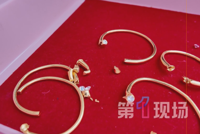 当黄金回收点进行检查时,工作人员意外发现这份断裂的黄金手镯内部,疑似藏有两颗钢珠。